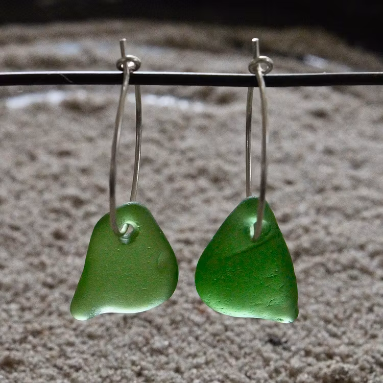 Observera att de två havsglasbitarna i paret inte är identiska, utan varierar en aning i form, tjocklek och färgnyans.