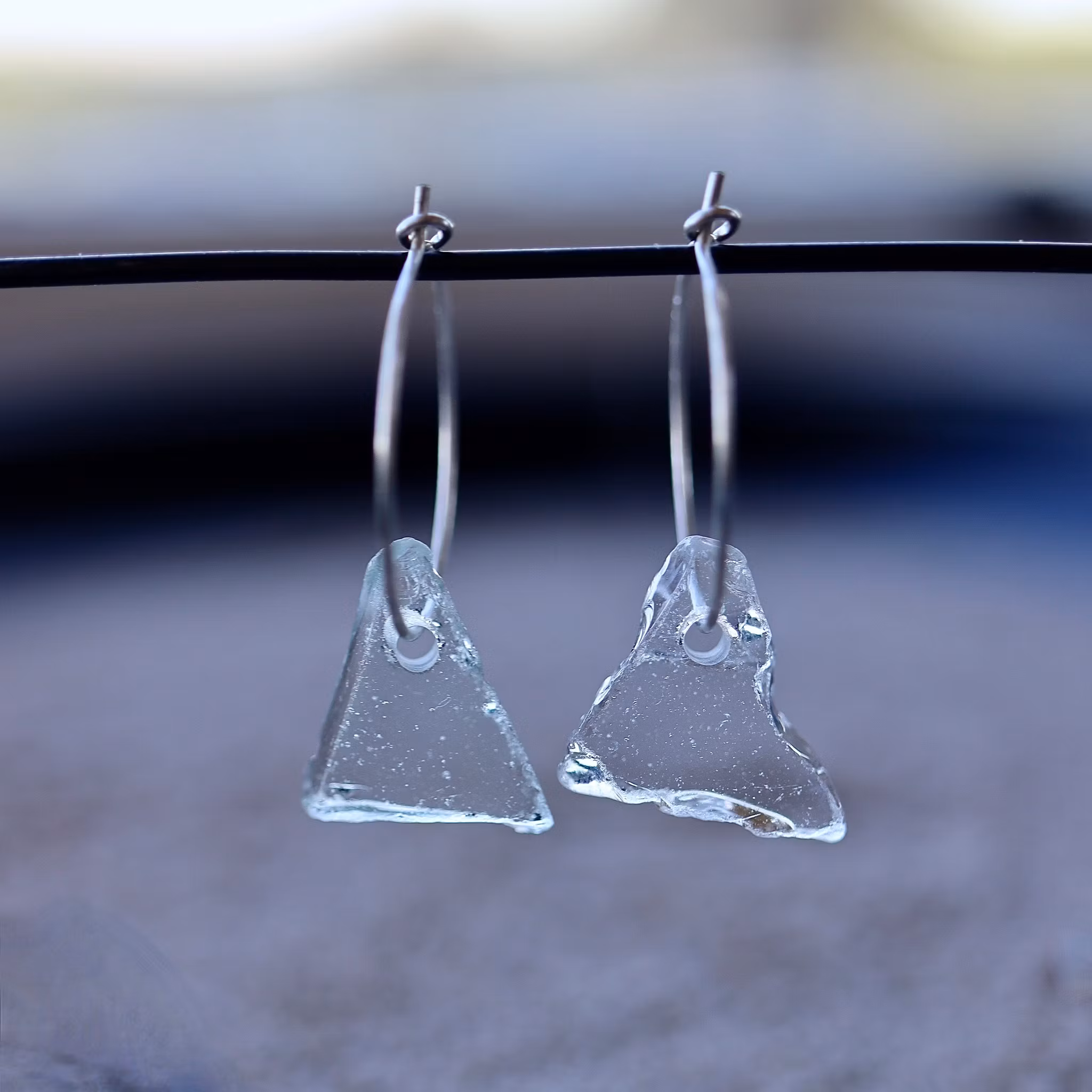 Observera att de två havsglasbitarna i paret inte är identiska, utan varierar en aning i form, tjocklek och färgnyans.