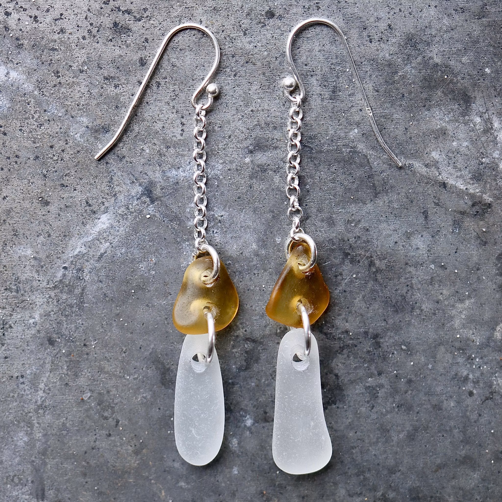 Observera att havsglasbitarna i paret inte är identiska, utan varierar en aning i form, tjocklek och färgnyans.