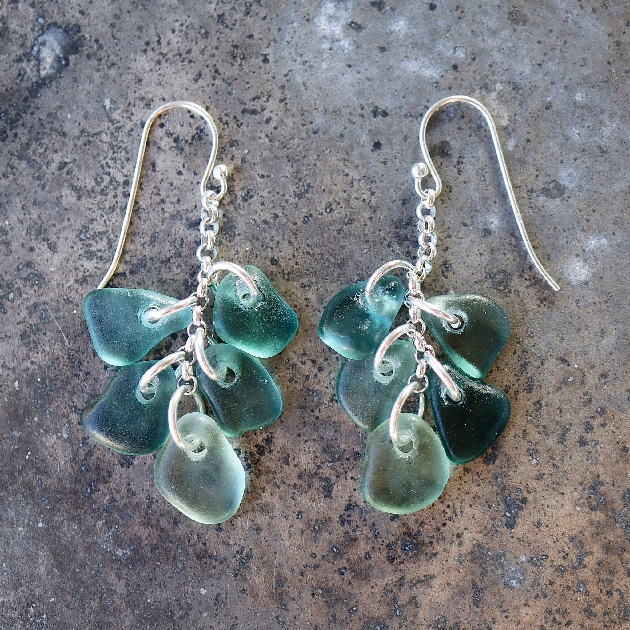 Observera att havsglasbitarna i paret inte är identiska, utan varierar en aning i form, tjocklek och färgnyans.