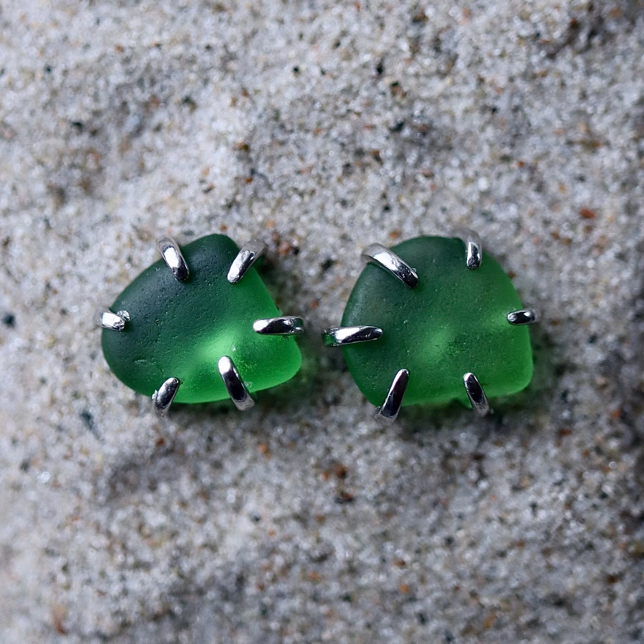 Observera att de två havsglasbitarna i paret inte är identiska, utan varierar en aning i form, tjocklek och färgnyans.