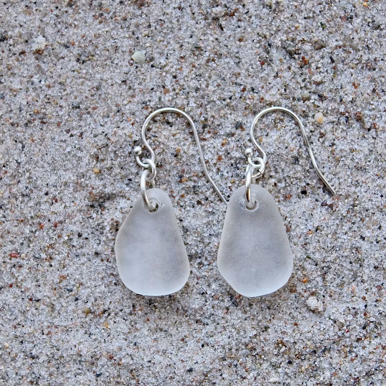 Observera att de två havsglasbitarna i paret inte är identiska, utan varierar en aning i form, tjocklek och färgnyans.