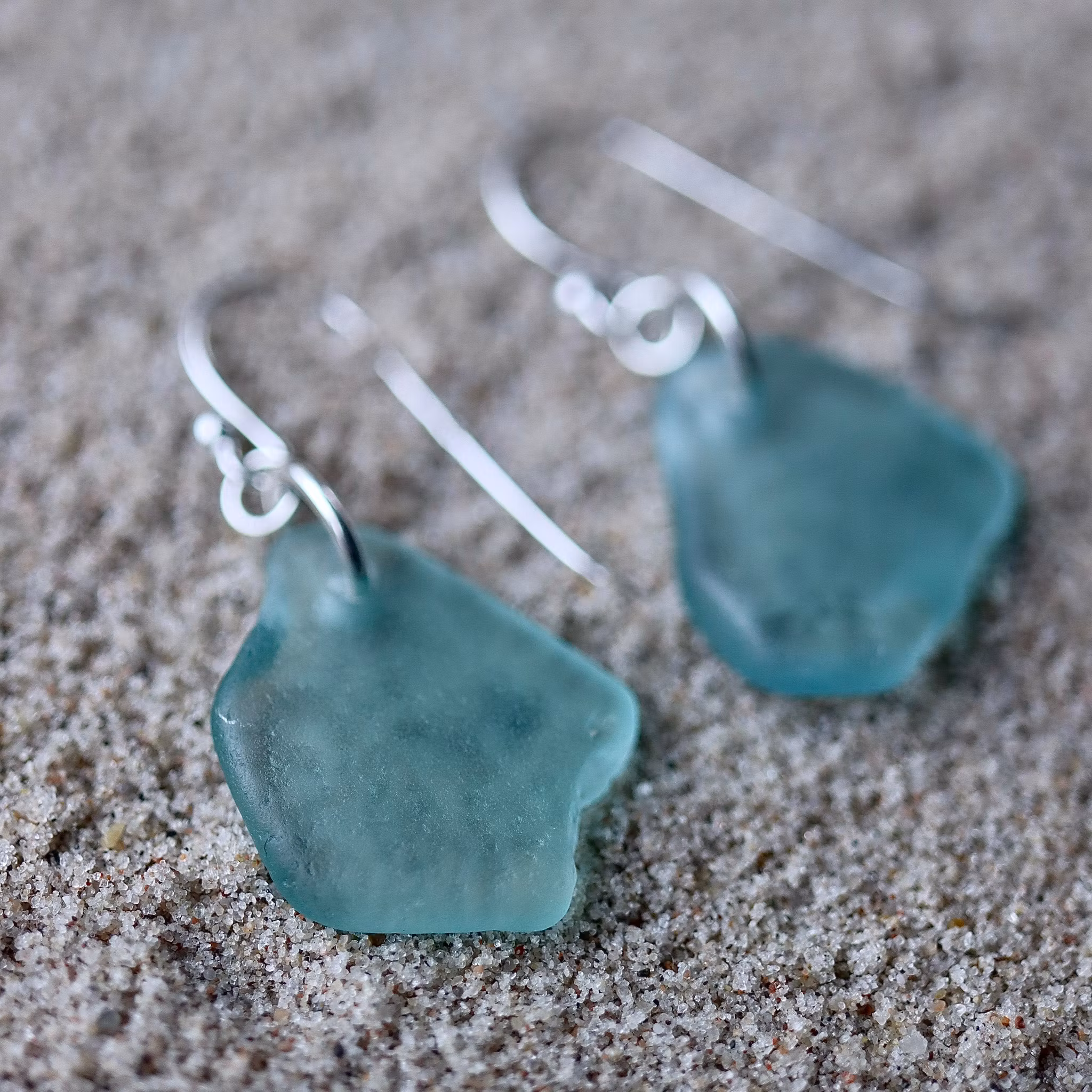 Observera att de två havsglasbitarna i paret inte är identiska, utan varierar en aning i form, tjocklek och färgnyans.