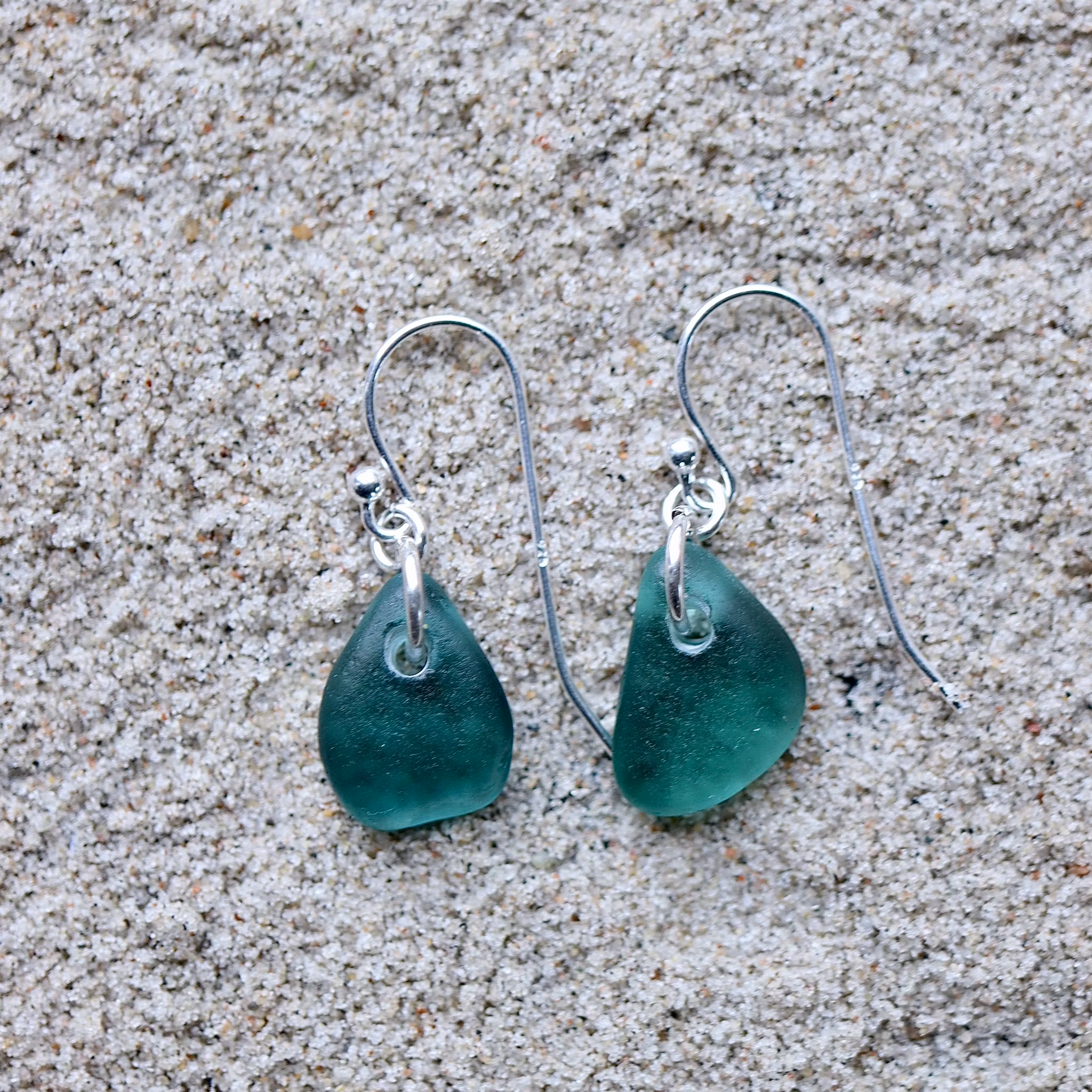 Observera att de två havsglasbitarna i paret inte är identiska, utan varierar en aning i form, tjocklek och färgnyans.