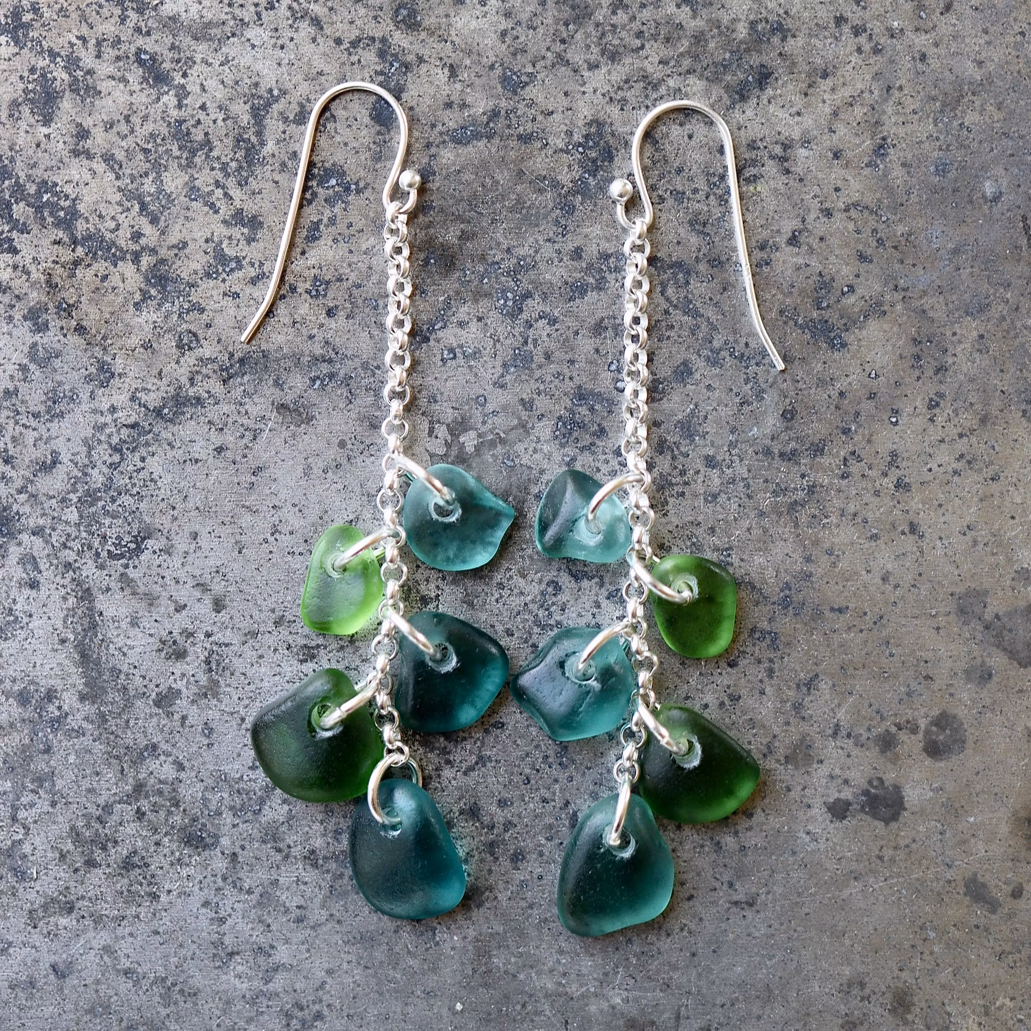 Observera att havsglasbitarna i paret inte är identiska, utan varierar en aning i form, tjocklek och färgnyans.