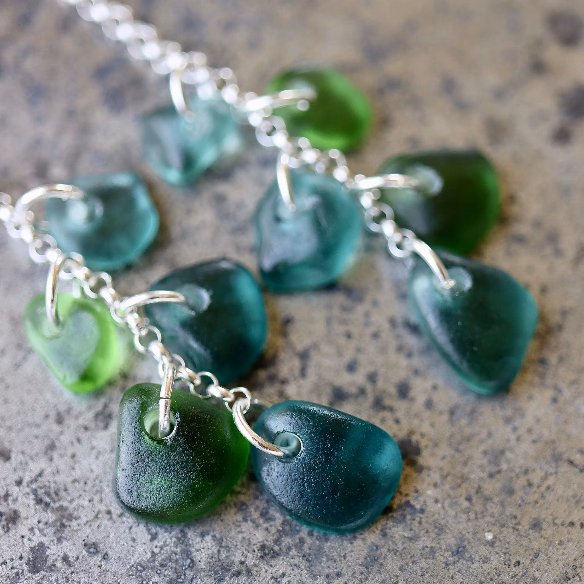 Unika smycken formade av vågor, sand och tid.