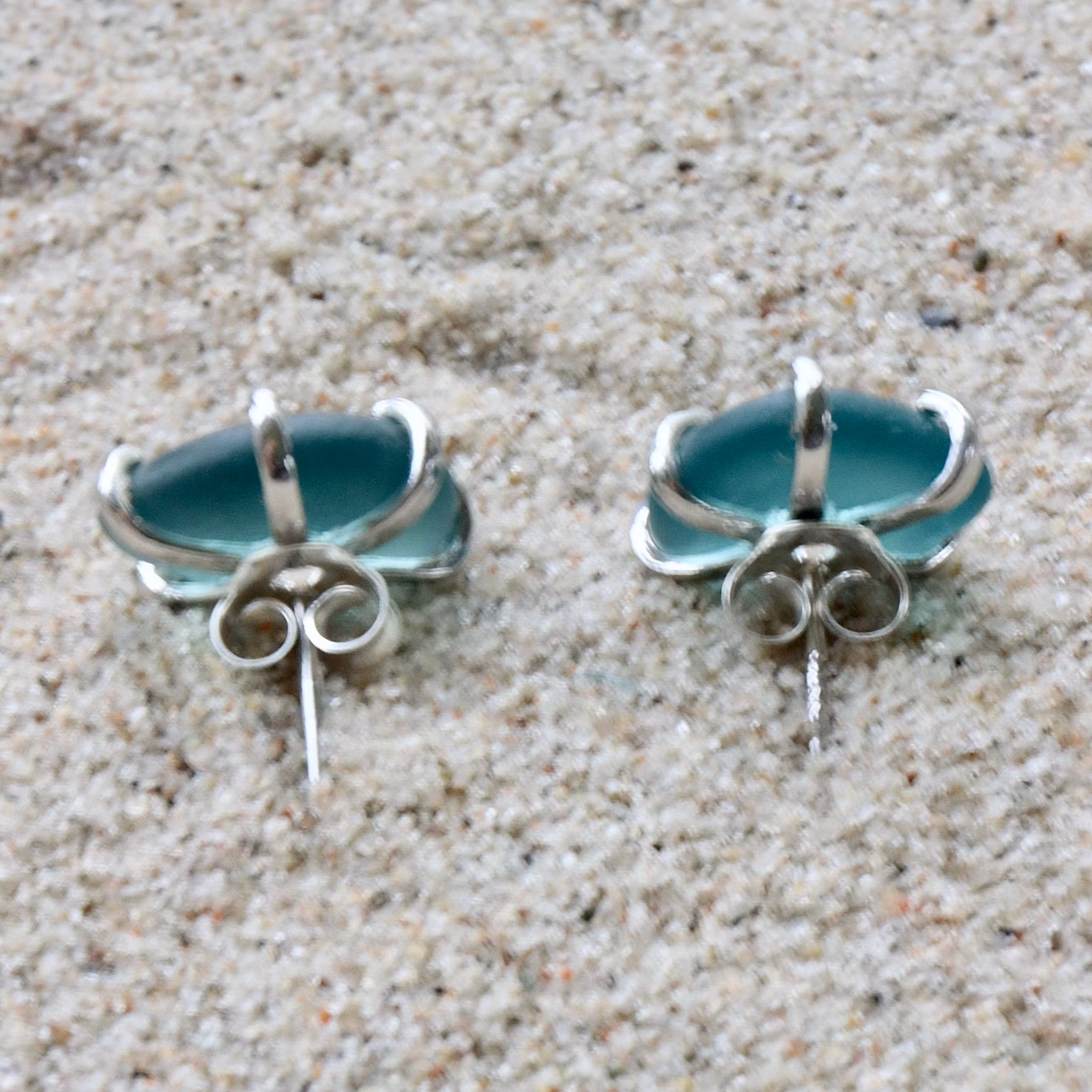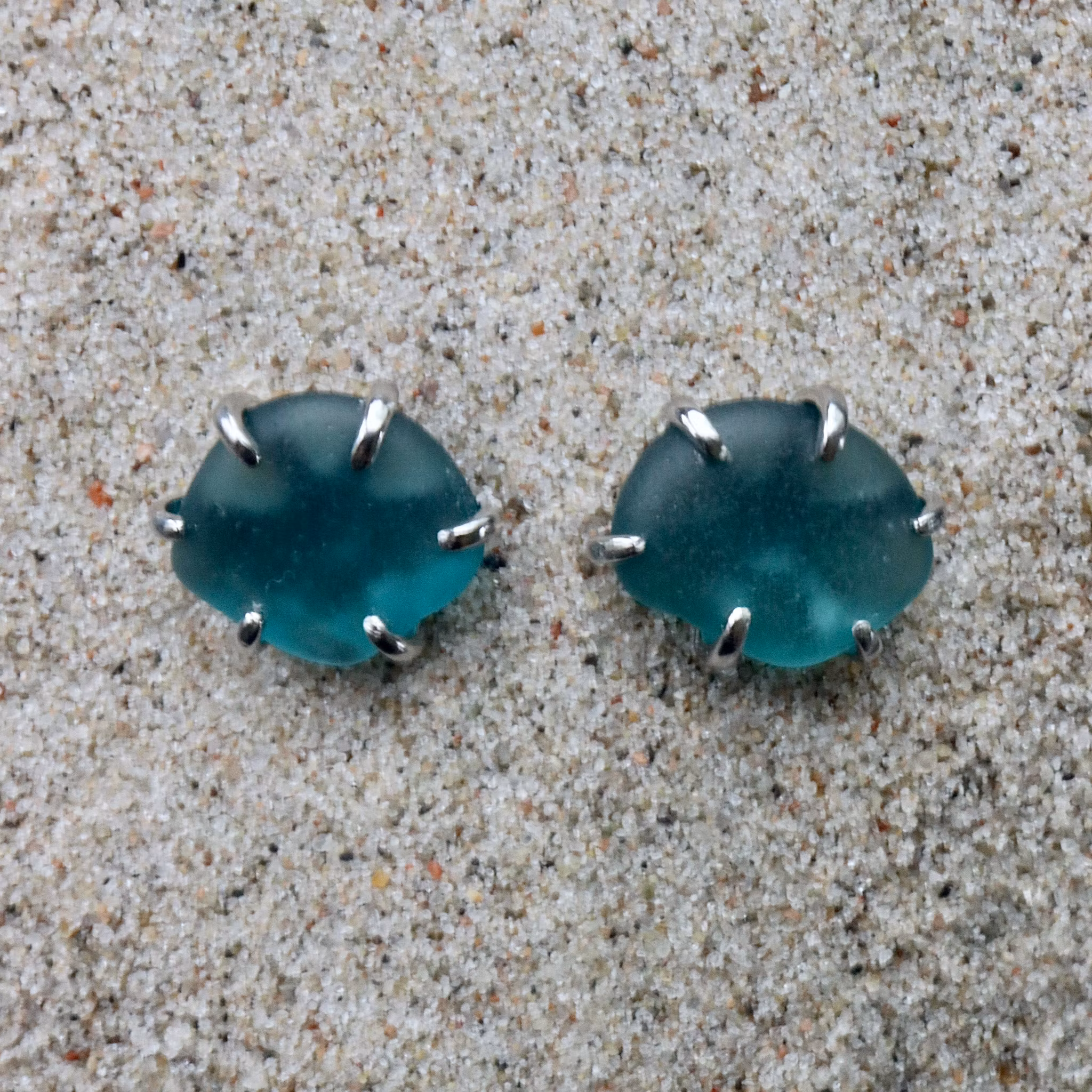 Observera att de två havsglasbitarna i paret inte är identiska, utan varierar en aning i form, tjocklek och färgnyans.