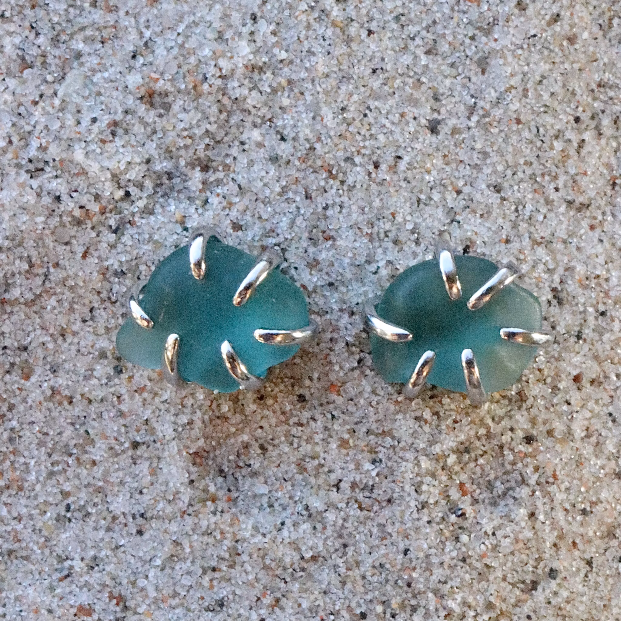 Observera att de två havsglasbitarna i paret inte är identiska, utan varierar en aning i form, tjocklek och färgnyans.