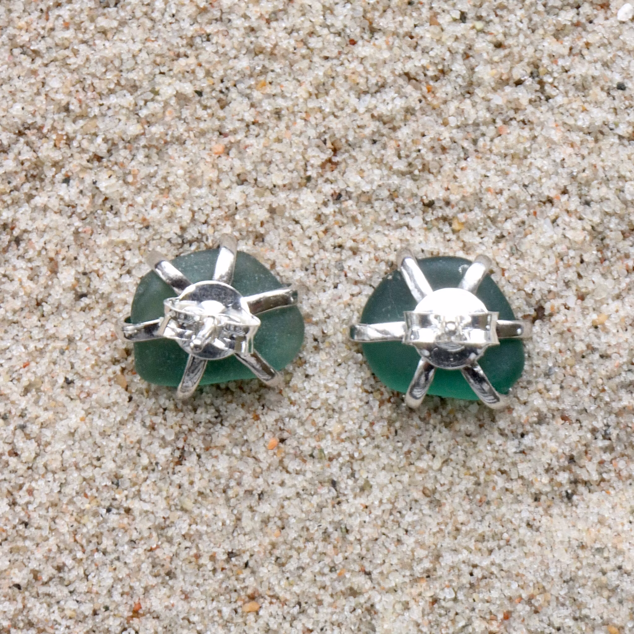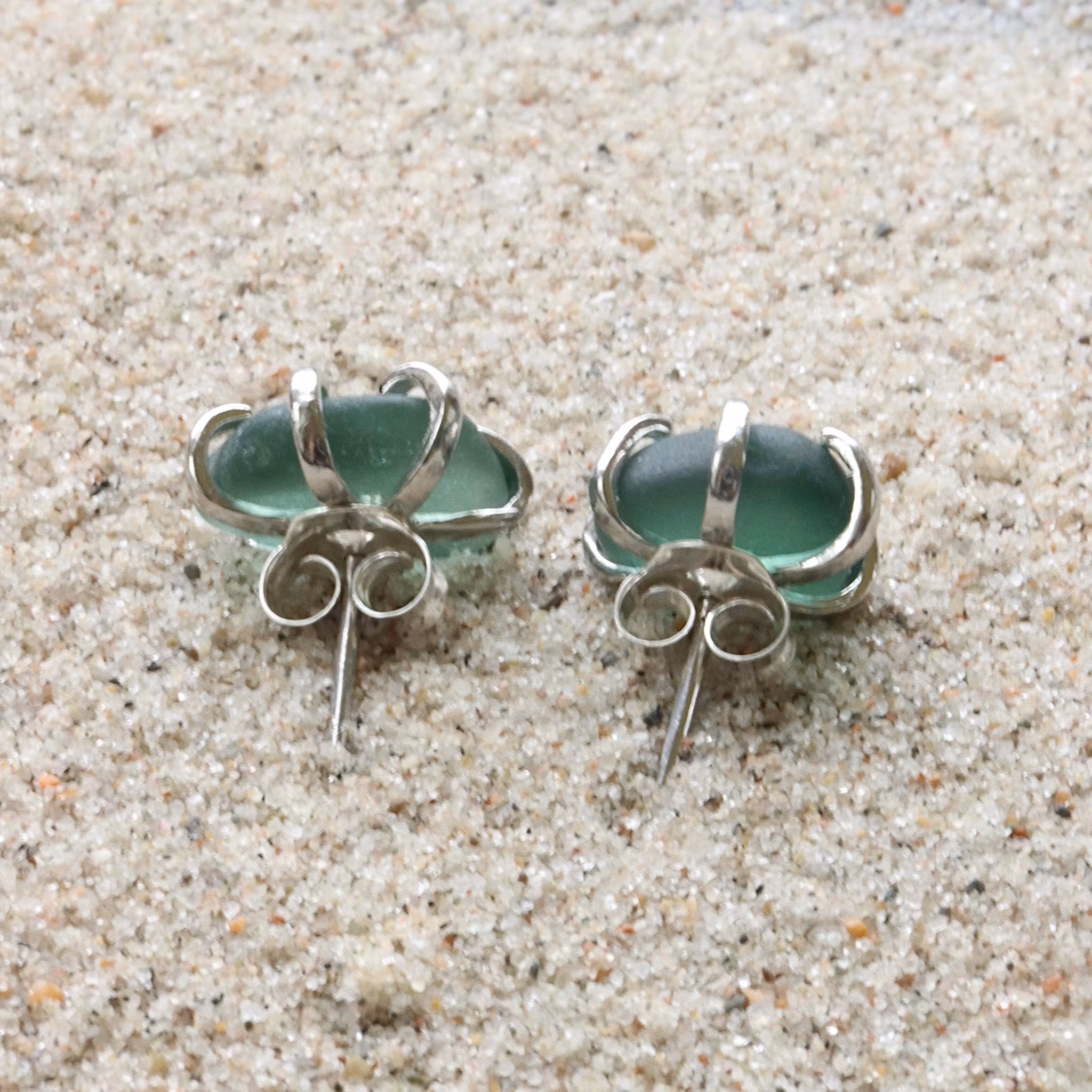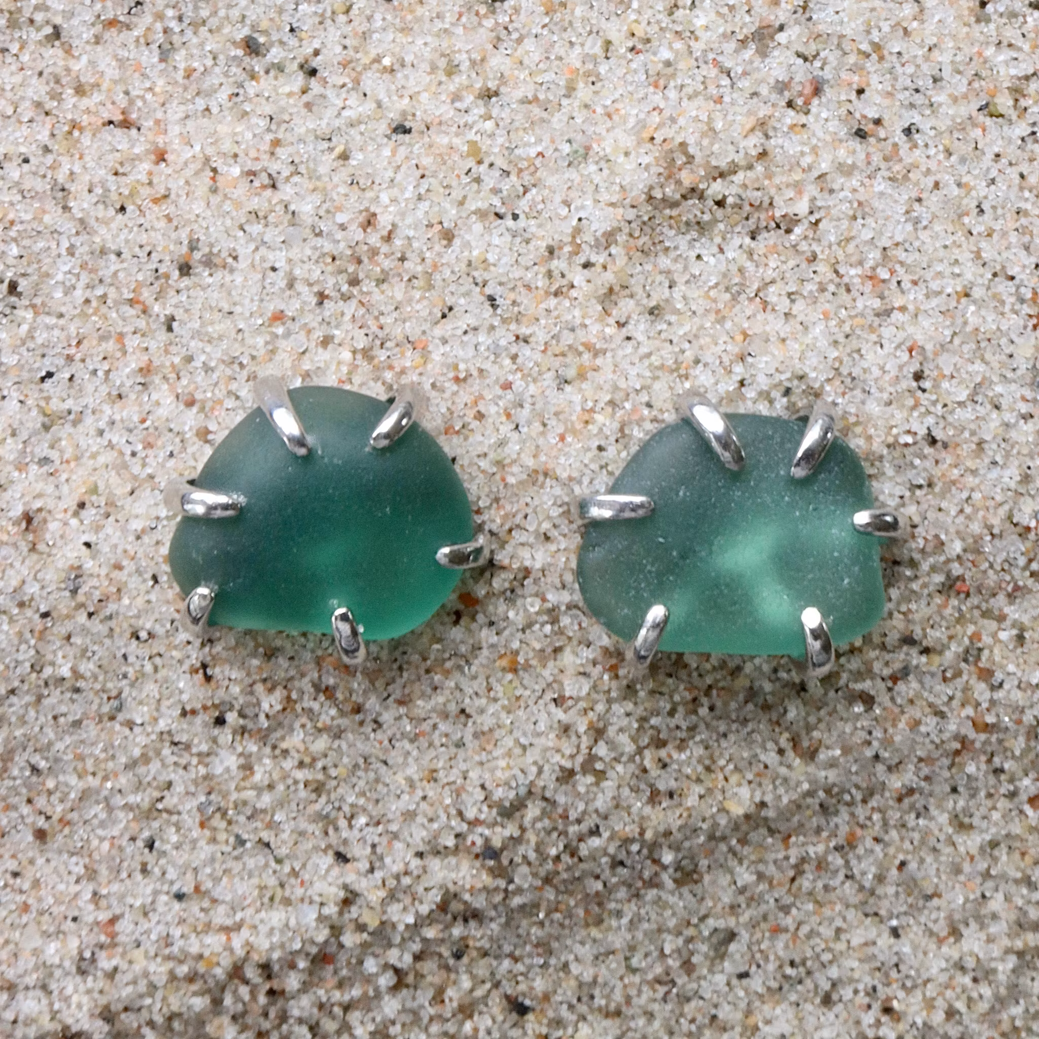 Observera att de två havsglasbitarna i paret inte är identiska, utan varierar en aning i form, tjocklek och färgnyans.