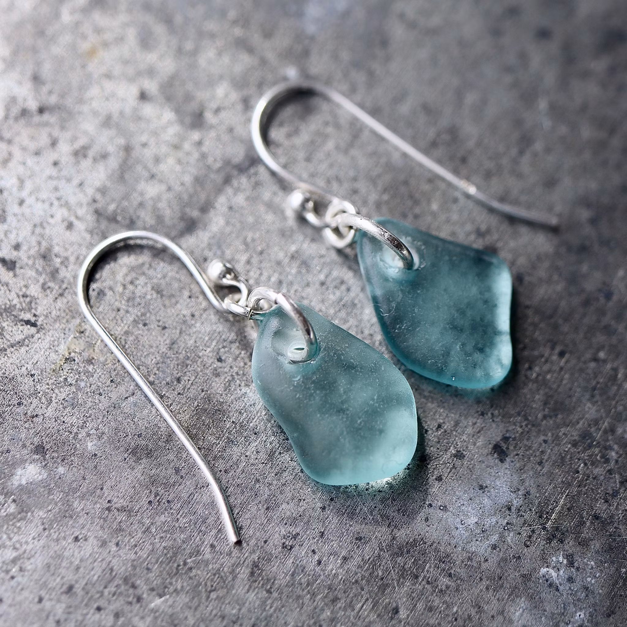 Observera att de två havsglasbitarna i paret inte är identiska, utan varierar en aning i form, tjocklek och färgnyans.