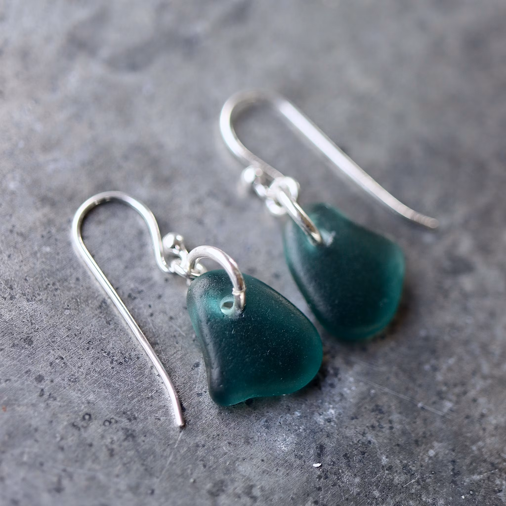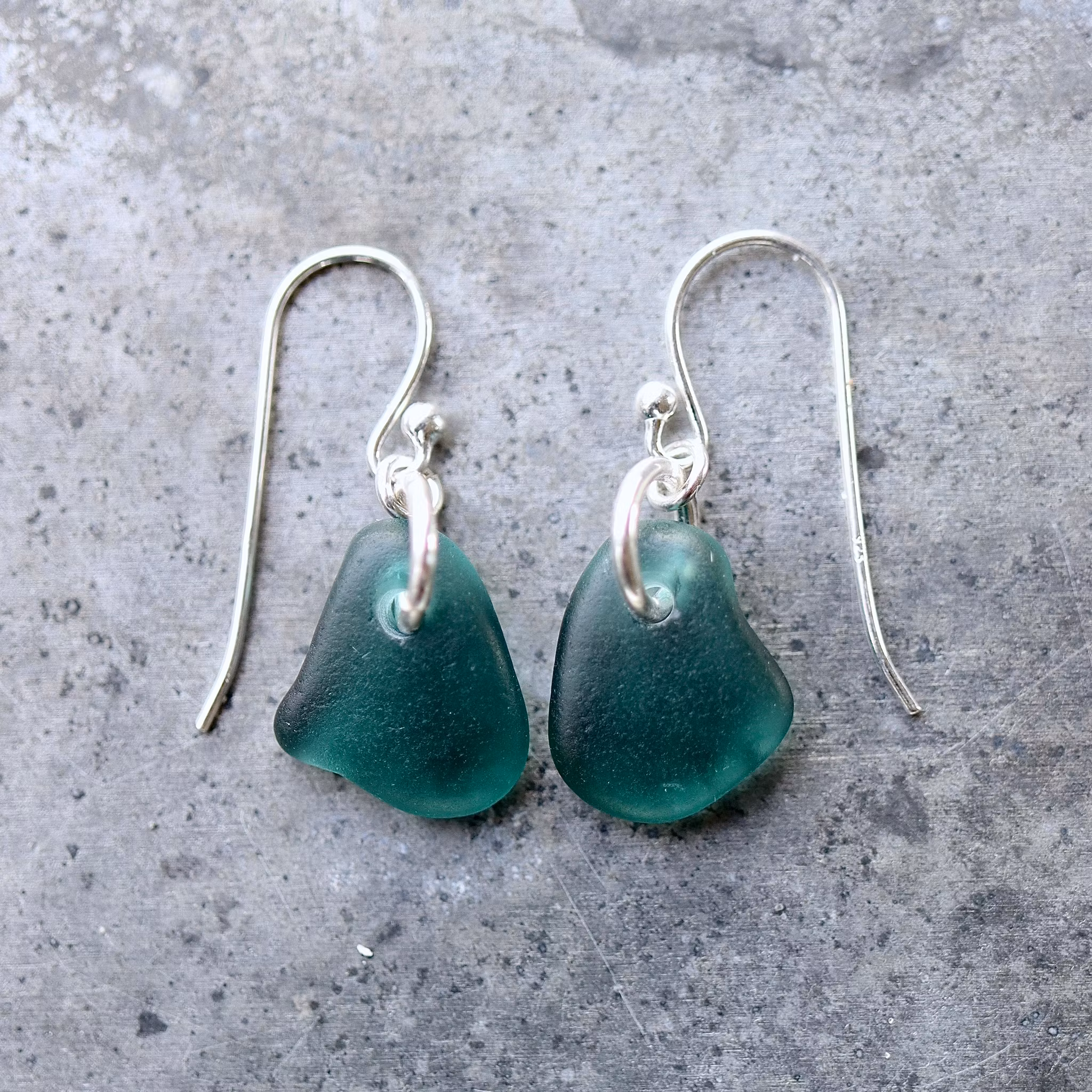 Observera att de två havsglasbitarna i paret inte är identiska, utan varierar en aning i form, tjocklek och färgnyans.