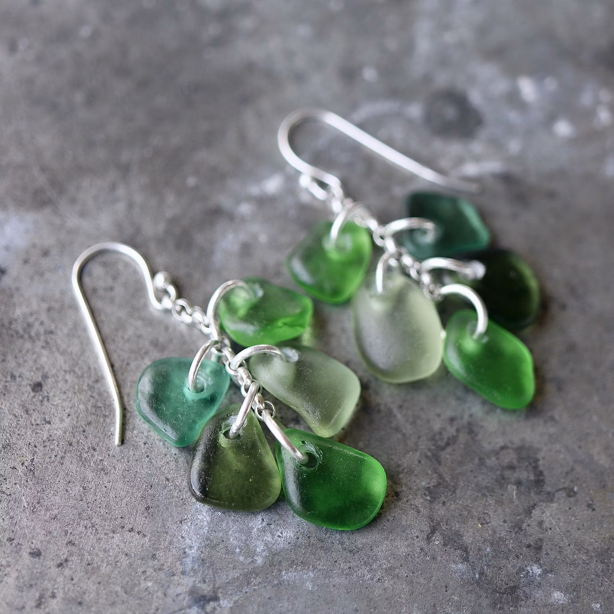 Observera att havsglasbitarna i paret inte är identiska, utan varierar en aning i form, tjocklek och färgnyans.