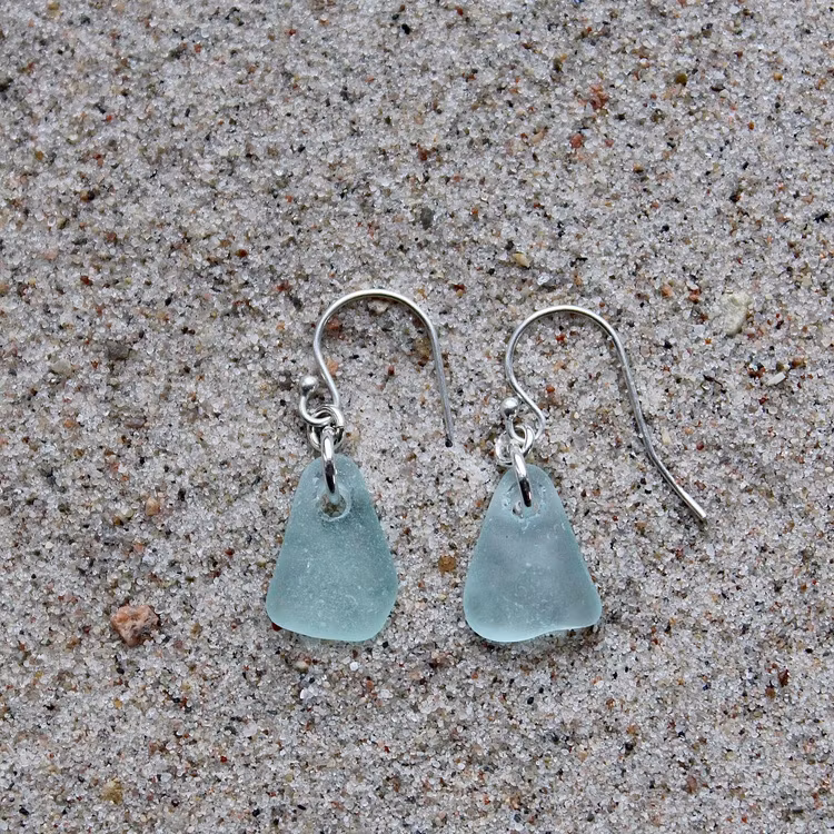 Observera att de två havsglasbitarna i paret inte är identiska, utan varierar en aning i form, tjocklek och färgnyans.