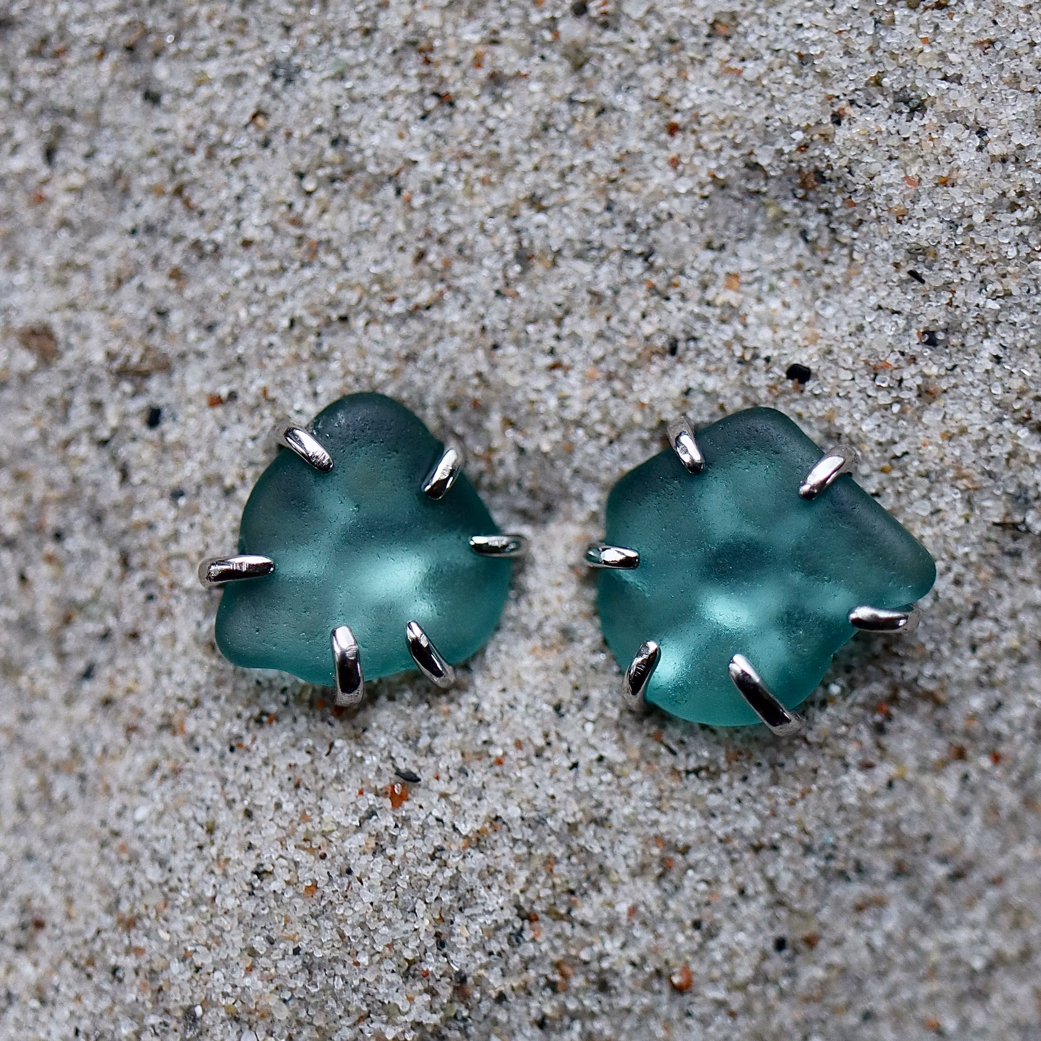 Observera att de två havsglasbitarna i paret inte är identiska, utan varierar en aning i form, tjocklek och färgnyans.