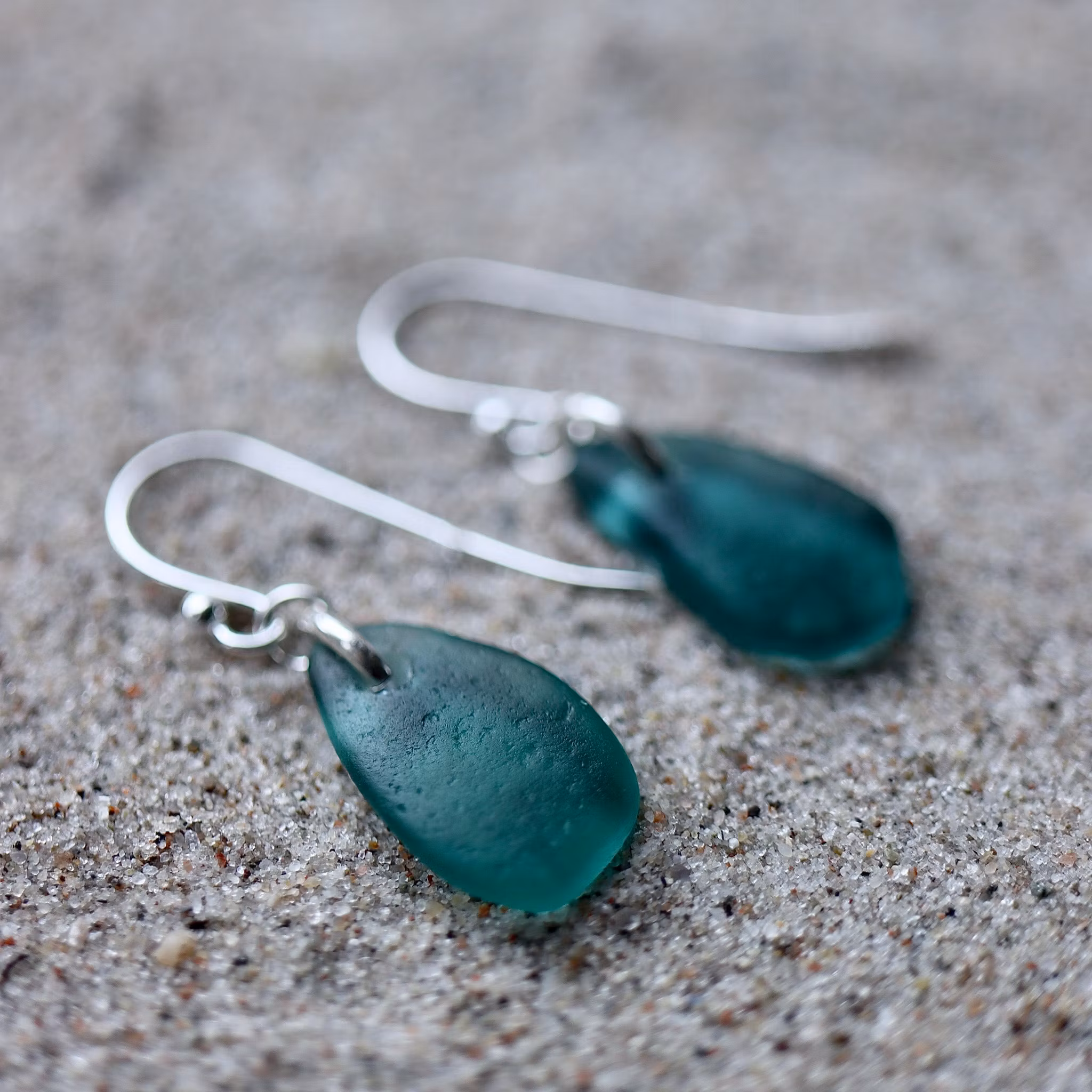 Observera att de två havsglasbitarna i paret inte är identiska, utan varierar en aning i form, tjocklek och färgnyans.