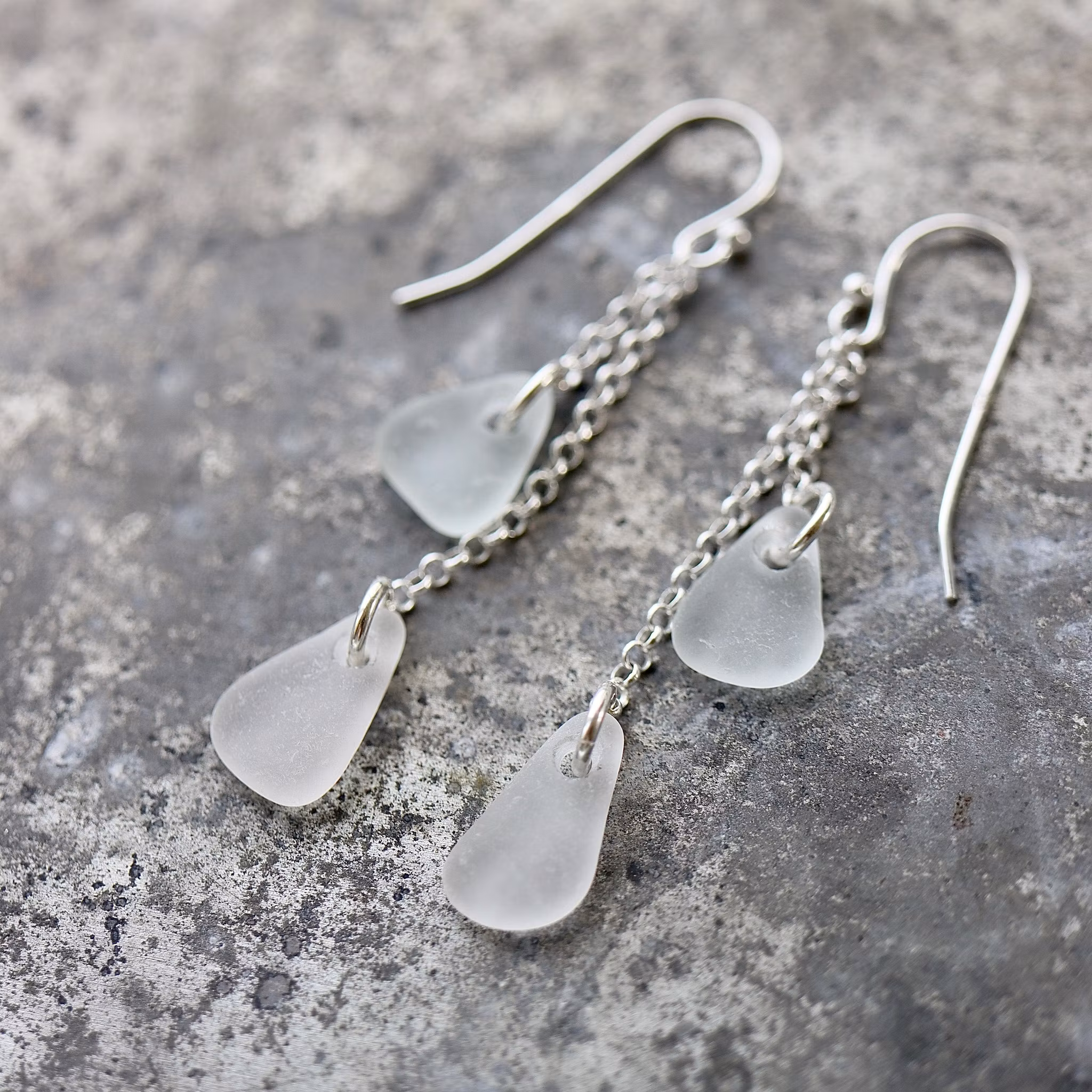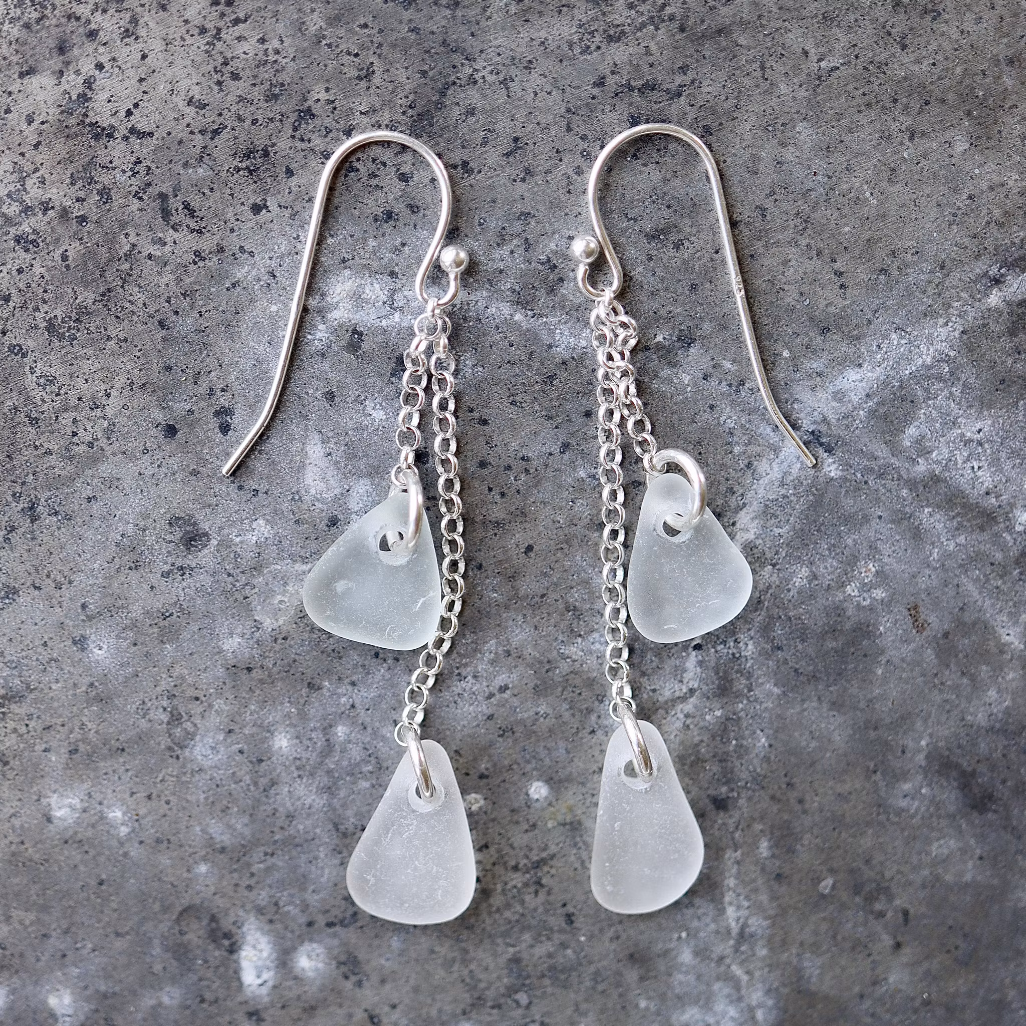 Observera att havsglasbitarna i paret inte är identiska, utan varierar en aning i form, tjocklek och färgnyans.