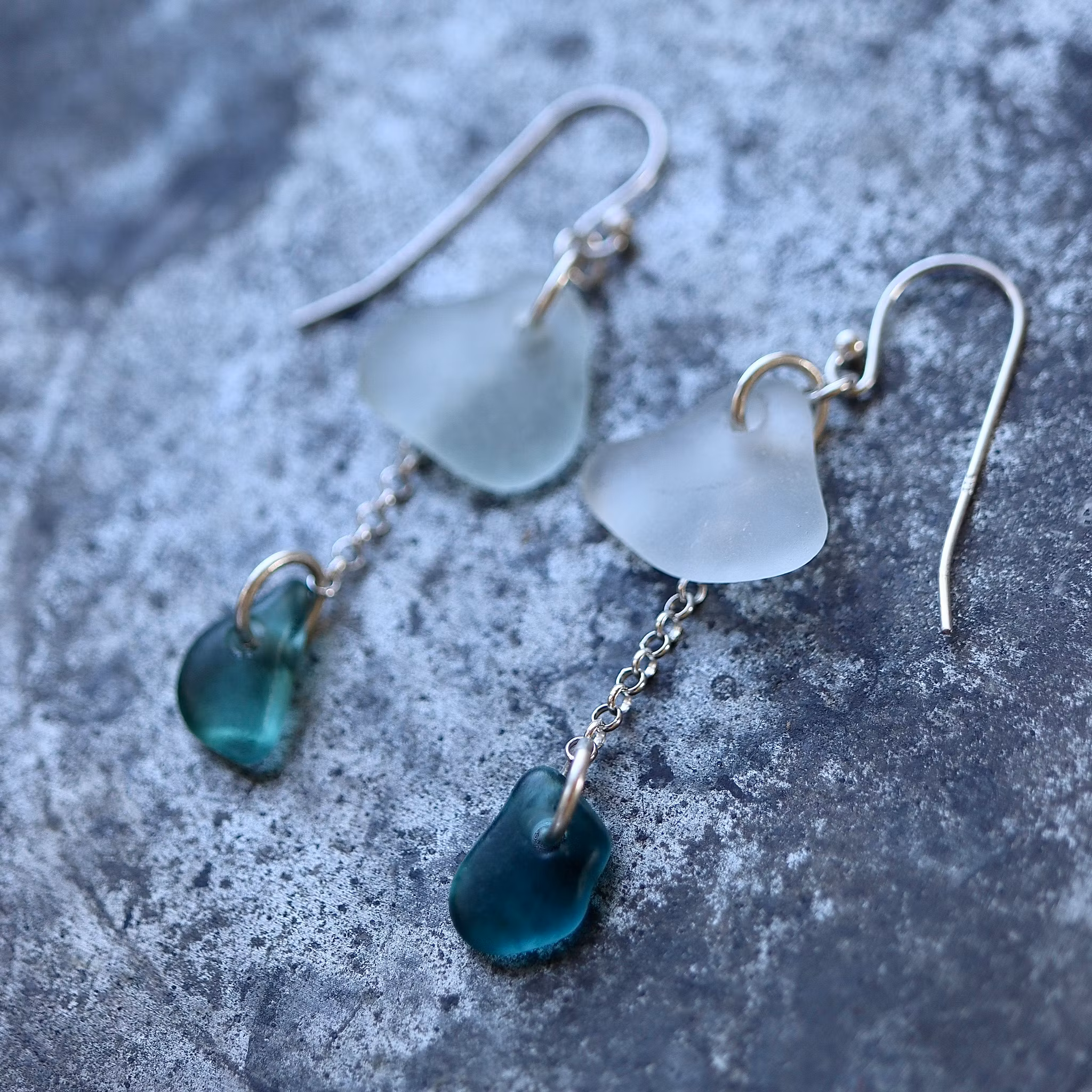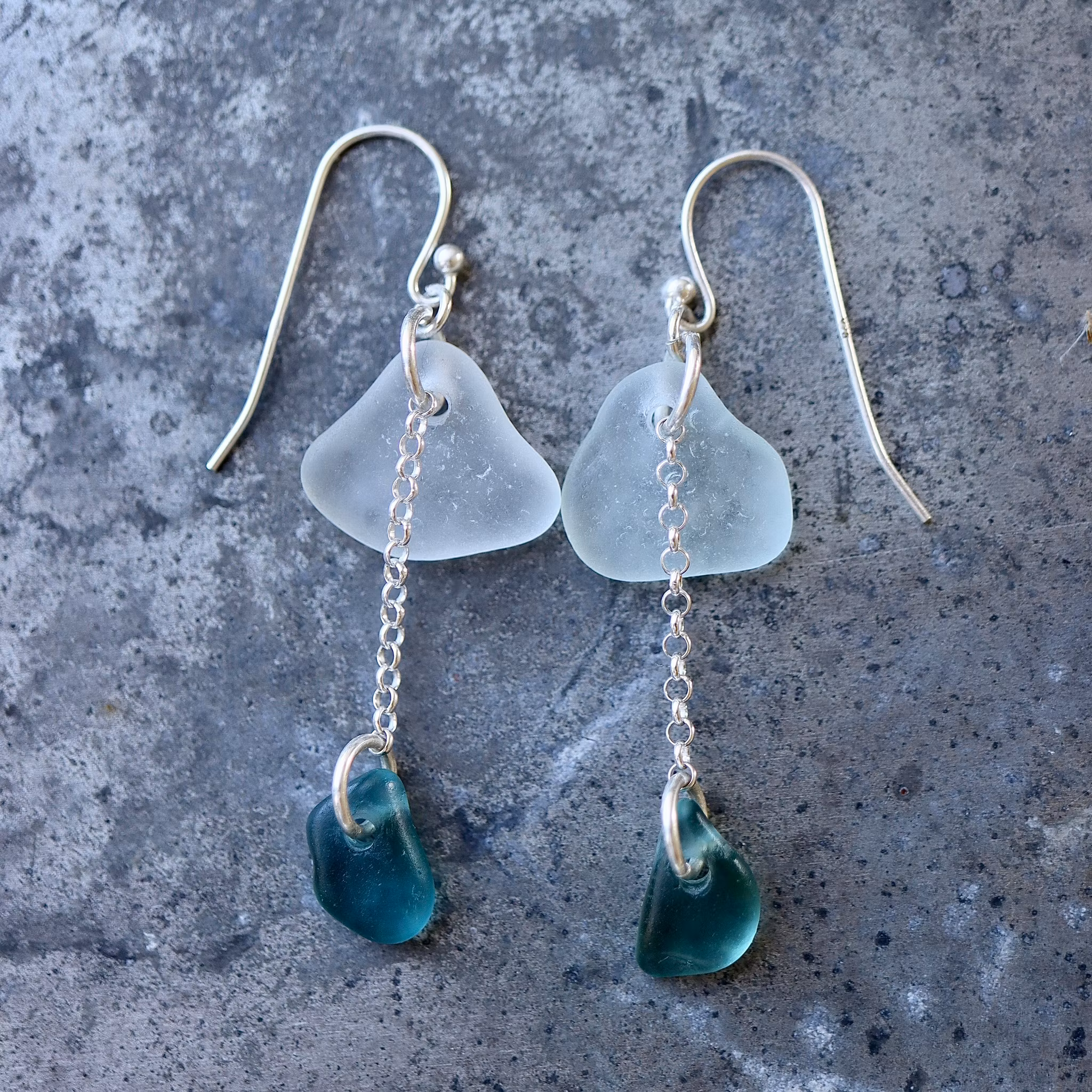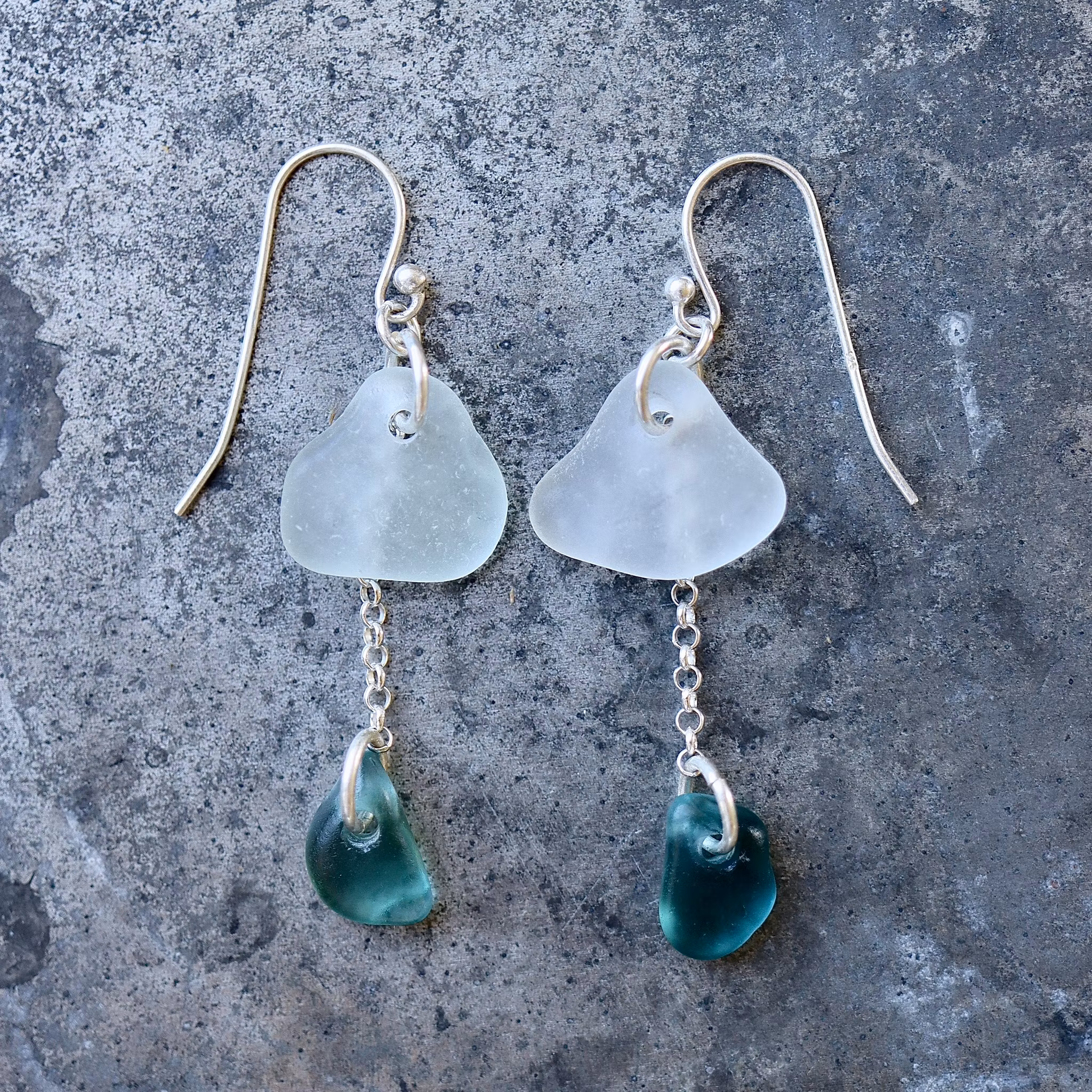 Observera att havsglasbitarna i paret inte är identiska, utan varierar en aning i form, tjocklek och färgnyans.