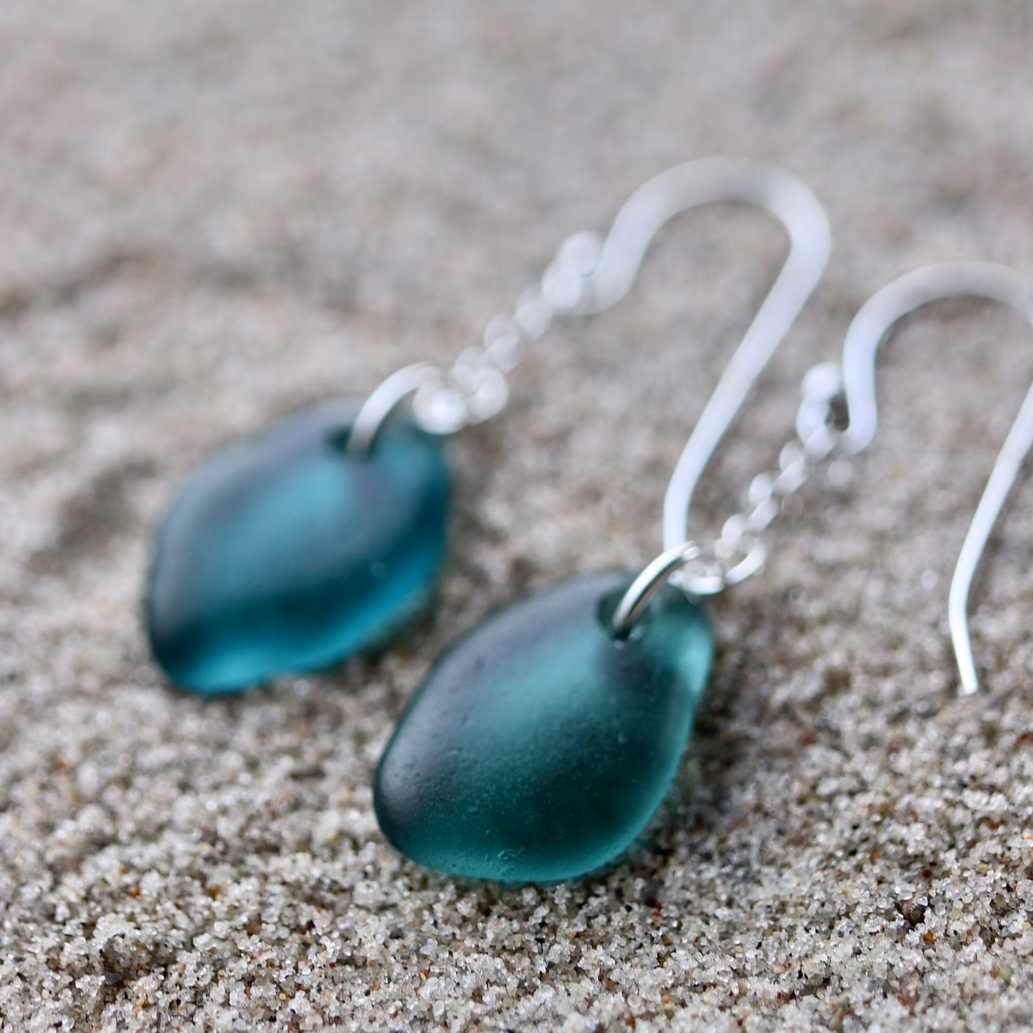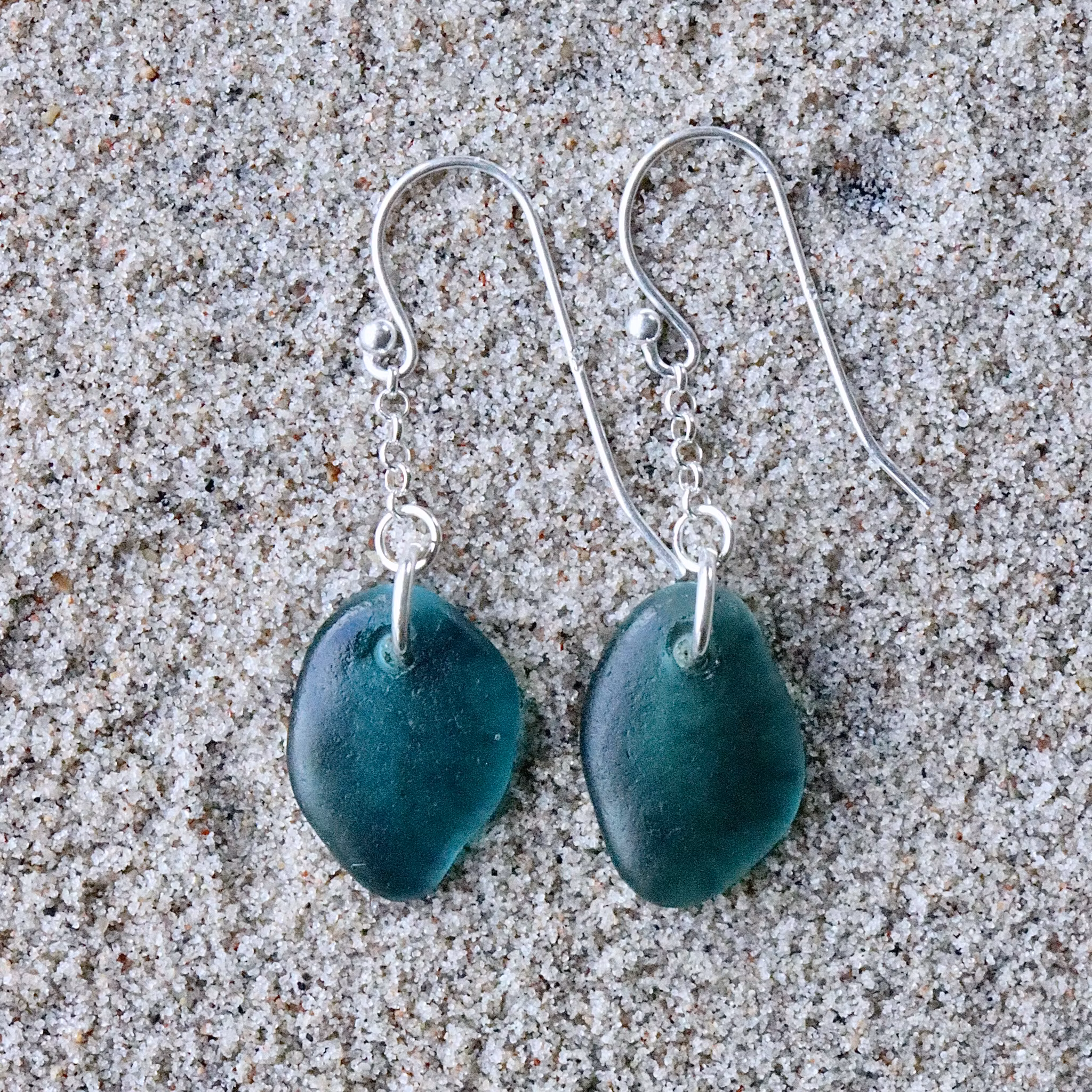 Observera att de två havsglasbitarna i paret inte är identiska, utan varierar en aning i form, tjocklek och färgnyans.