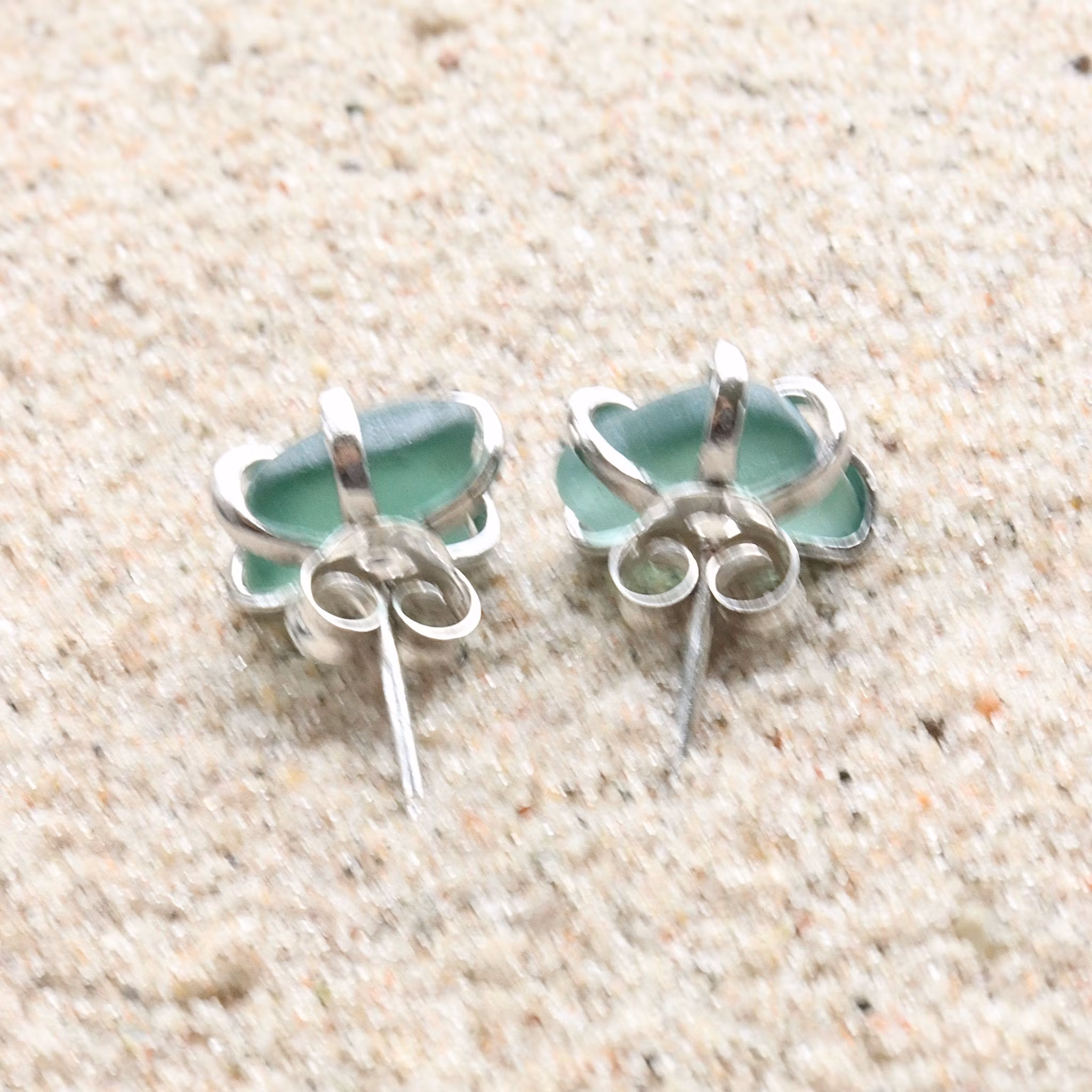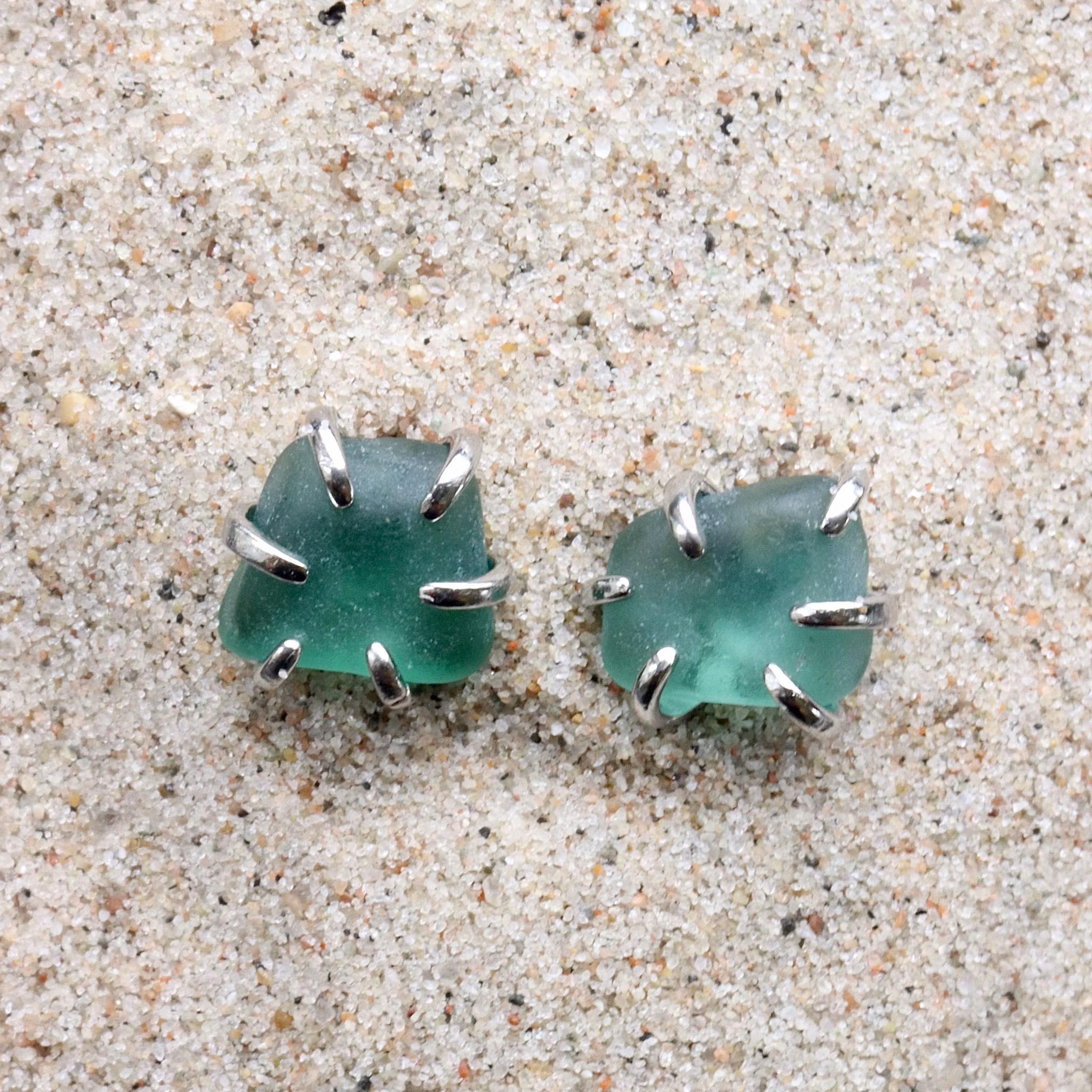 Observera att de två havsglasbitarna i paret inte är identiska, utan varierar en aning i form, tjocklek och färgnyans.