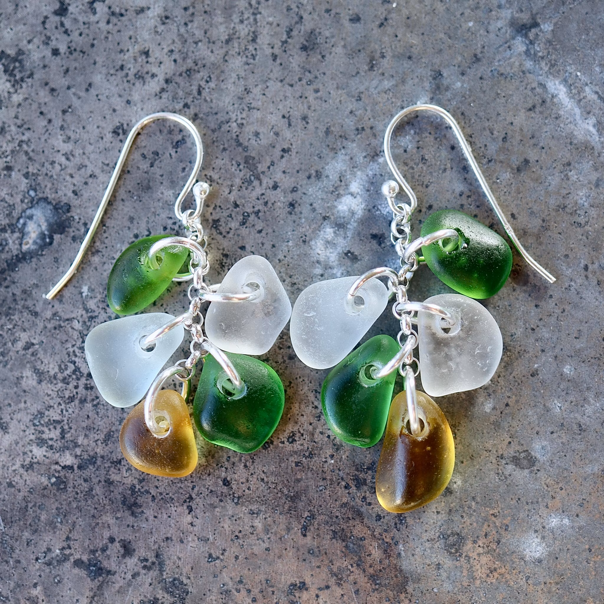 Observera att havsglasbitarna i paret inte är identiska, utan varierar en aning i form, tjocklek och färgnyans.