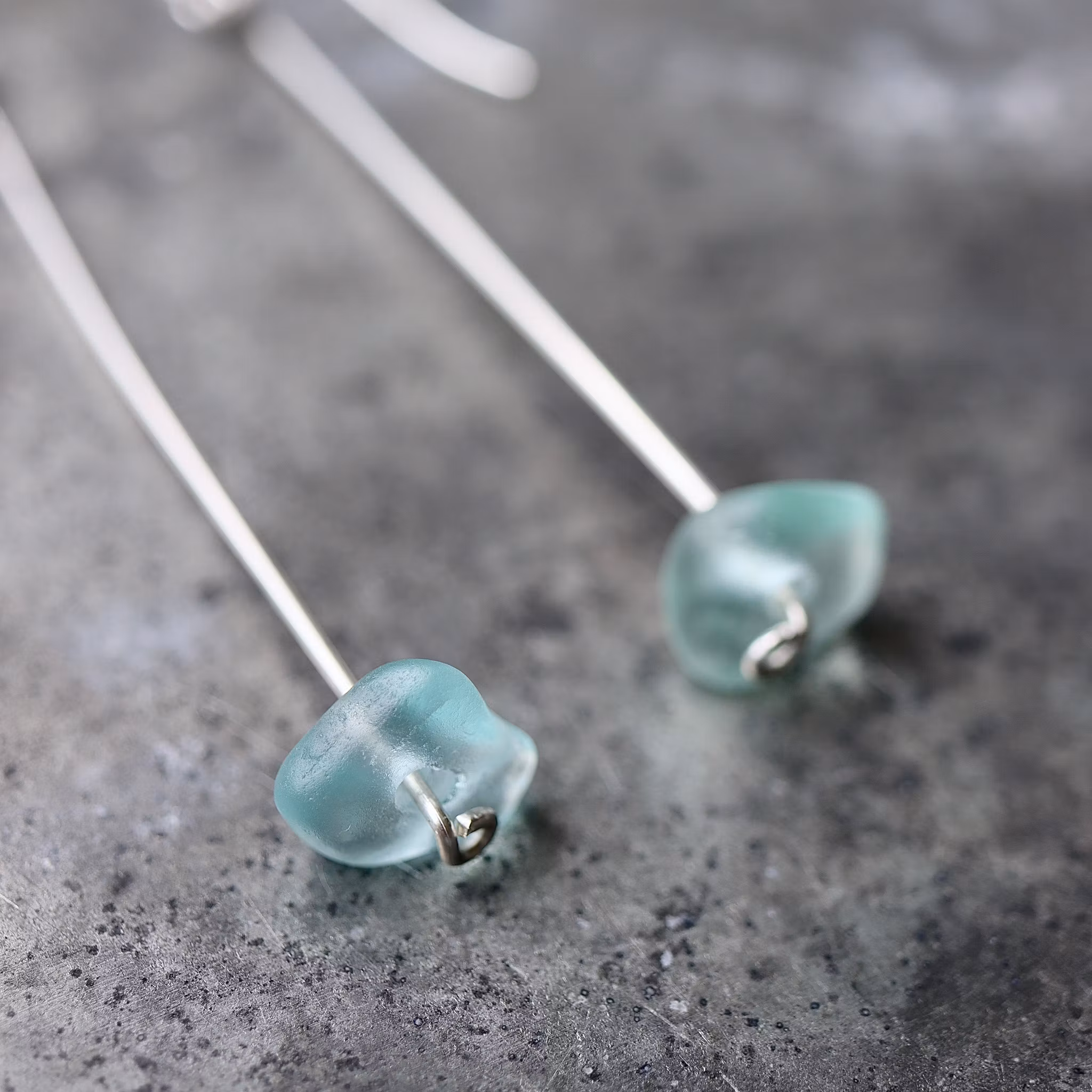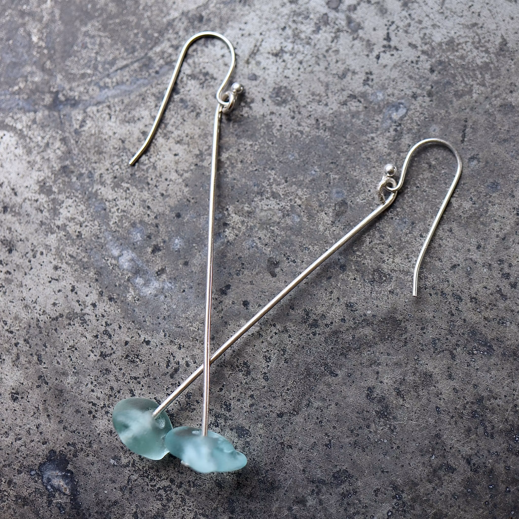 Observera att de två havsglasbitarna i paret inte är identiska, utan varierar en aning i form, tjocklek och färgnyans.