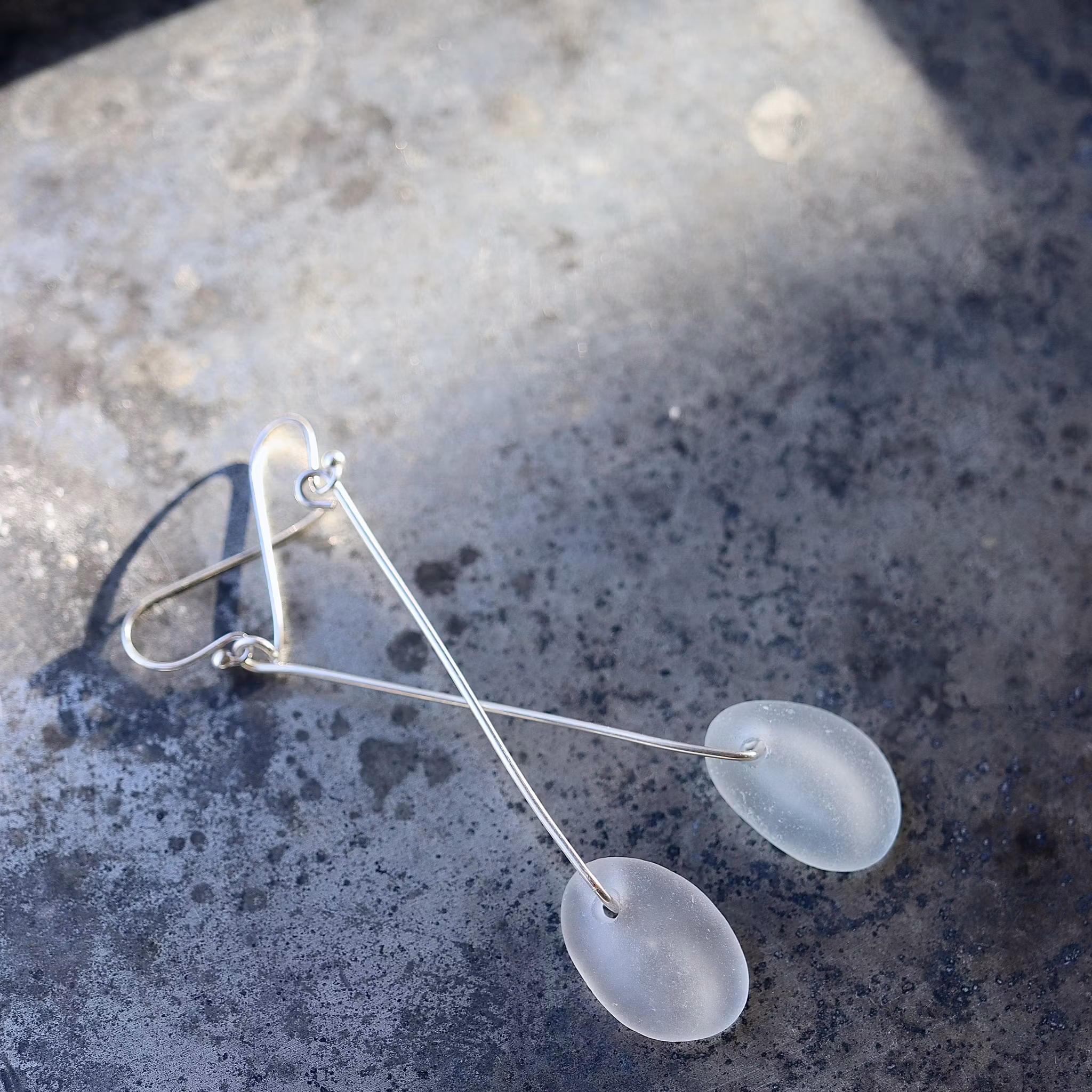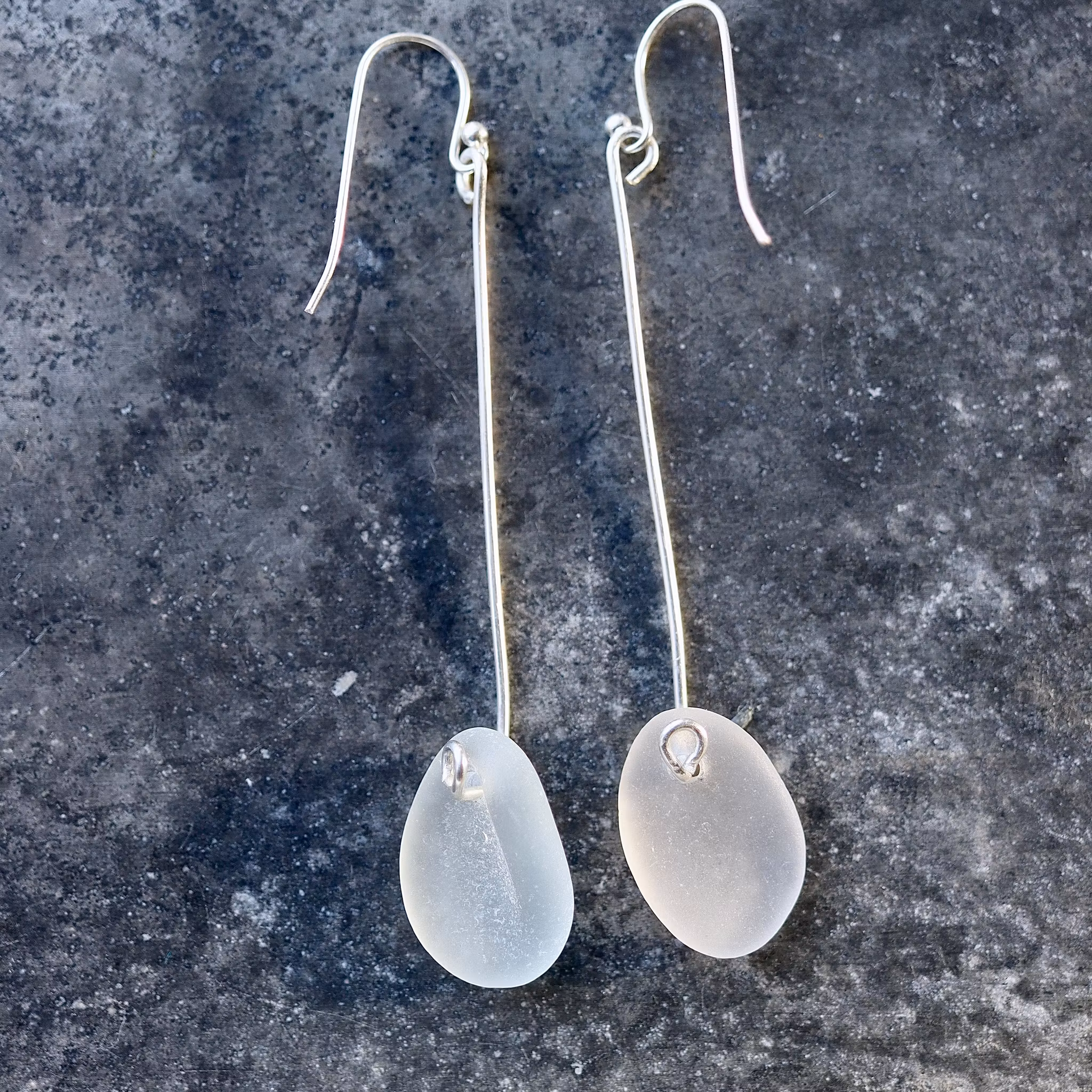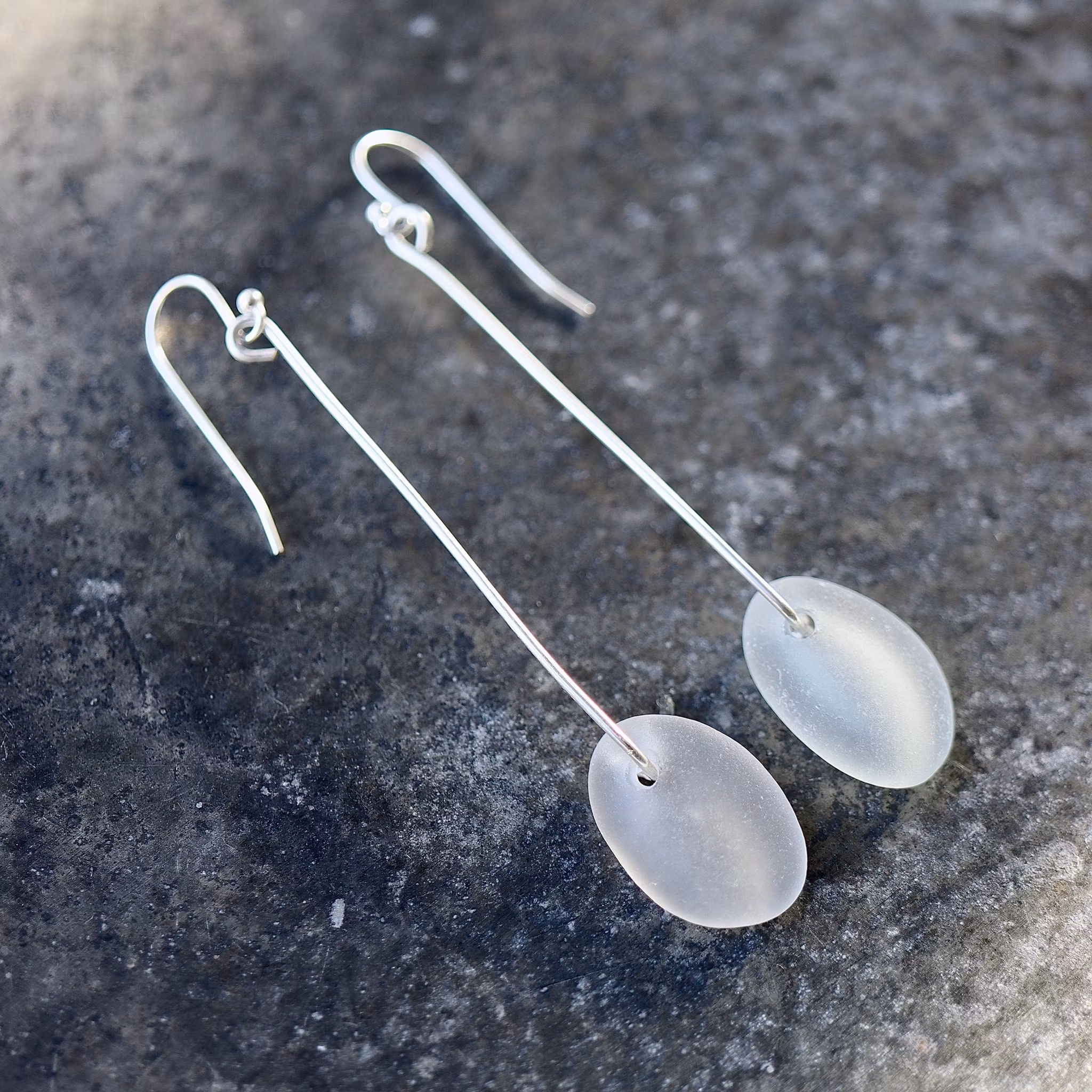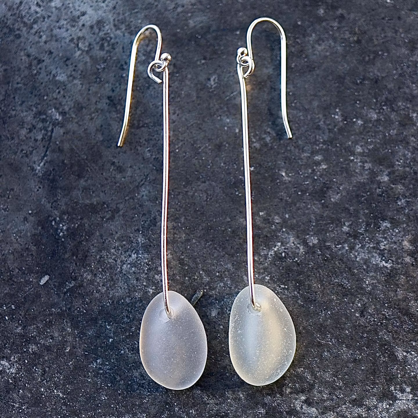 Observera att de två havsglasbitarna i paret inte är identiska, utan varierar en aning i form, tjocklek och färgnyans.