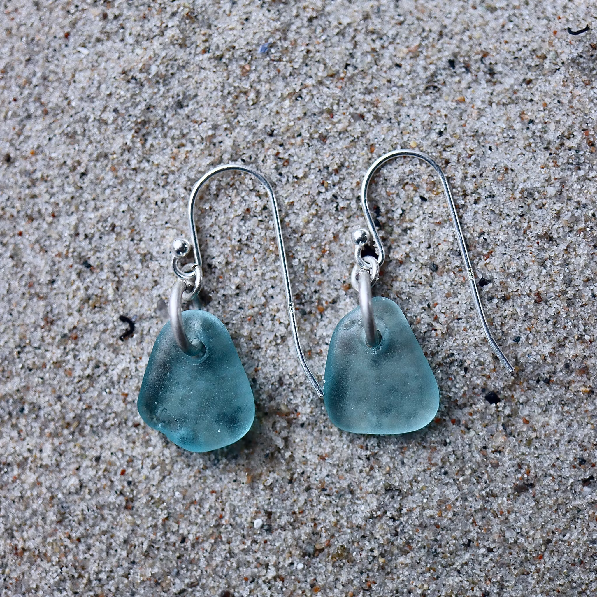 Observera att de två havsglasbitarna i paret inte är identiska, utan varierar en aning i form, tjocklek och färgnyans.