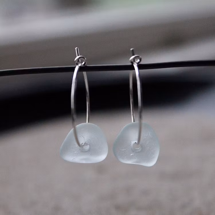 Observera att de två havsglasbitarna i paret inte är identiska, utan varierar en aning i form, tjocklek och färgnyans.