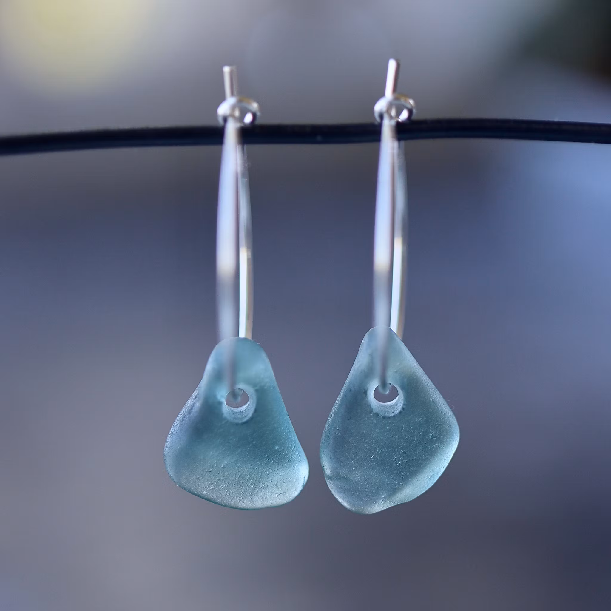 Observera att de två havsglasbitarna i paret inte är identiska, utan varierar en aning i form, tjocklek och färgnyans.