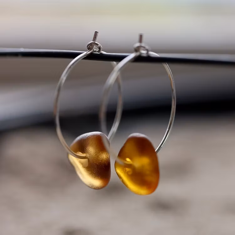 Observera att de två havsglasbitarna i paret inte är identiska, utan varierar en aning i form, tjocklek och färgnyans.