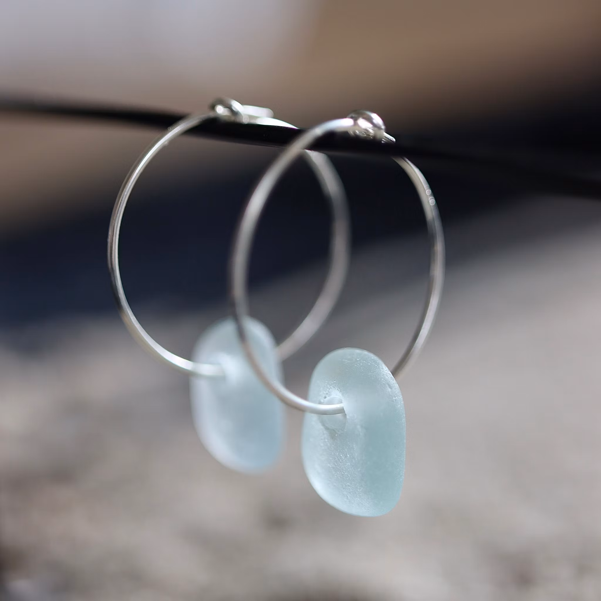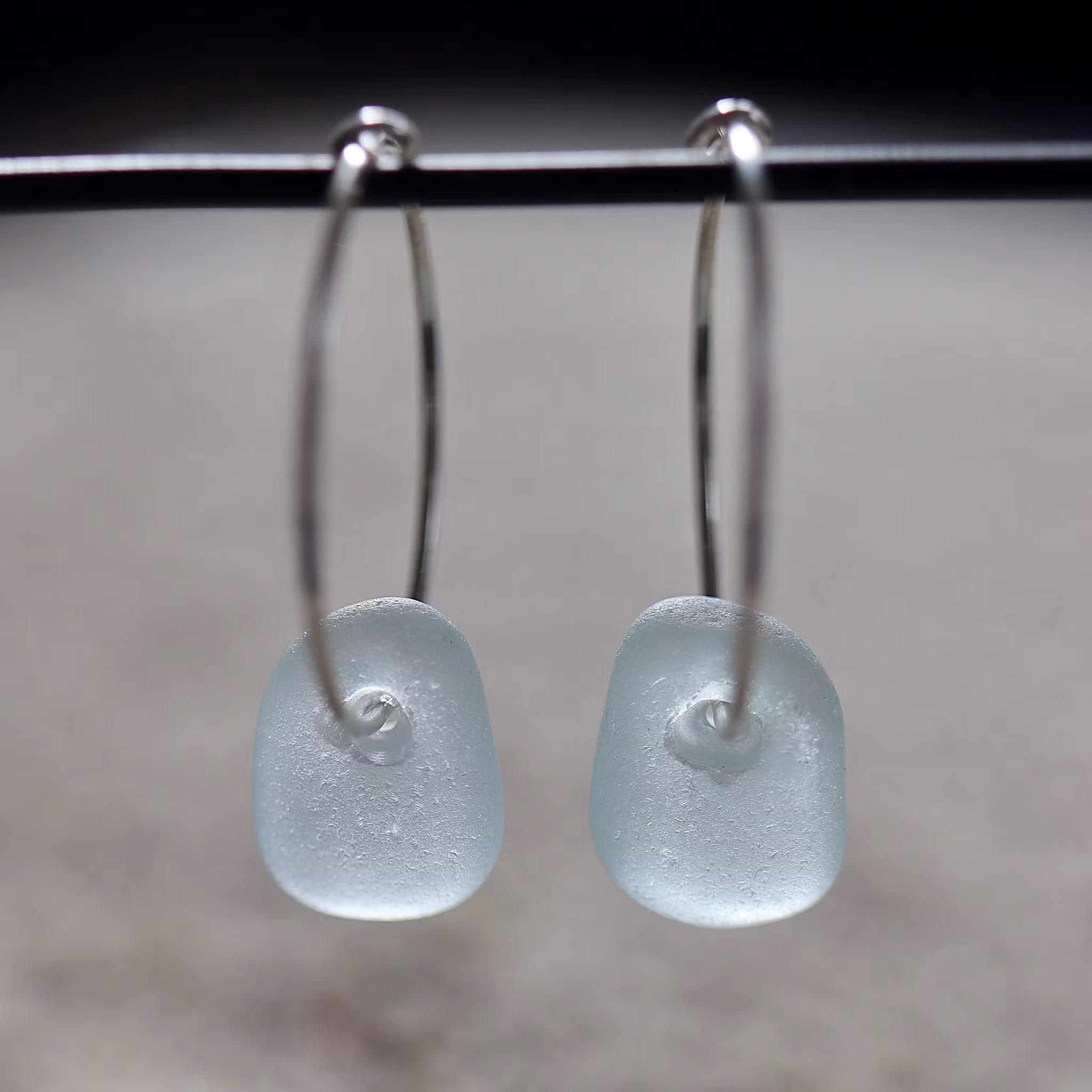 Observera att de två havsglasbitarna i paret inte är identiska, utan varierar en aning i form, tjocklek och färgnyans.