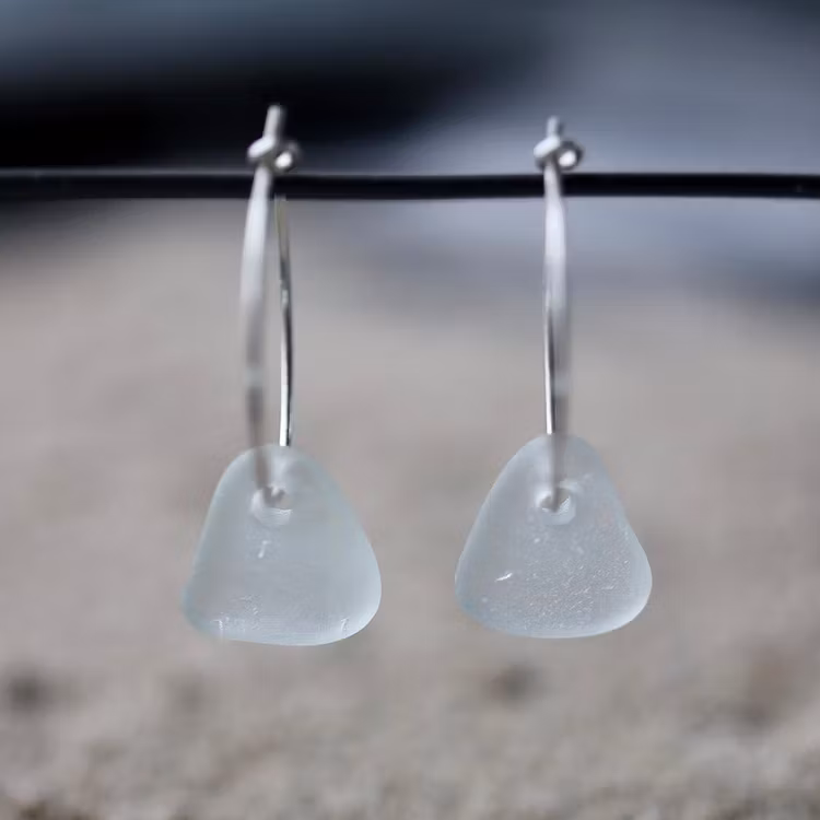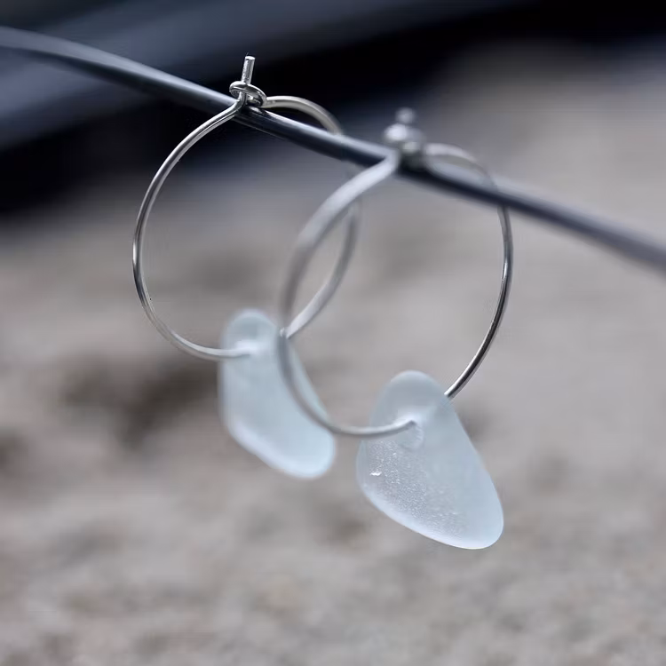 Observera att de två havsglasbitarna i paret inte är identiska, utan varierar en aning i form, tjocklek och färgnyans.