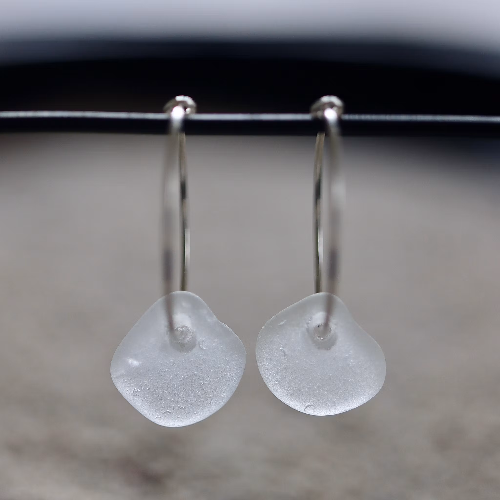 Observera att de två havsglasbitarna i paret inte är identiska, utan varierar en aning i form, tjocklek och färgnyans.