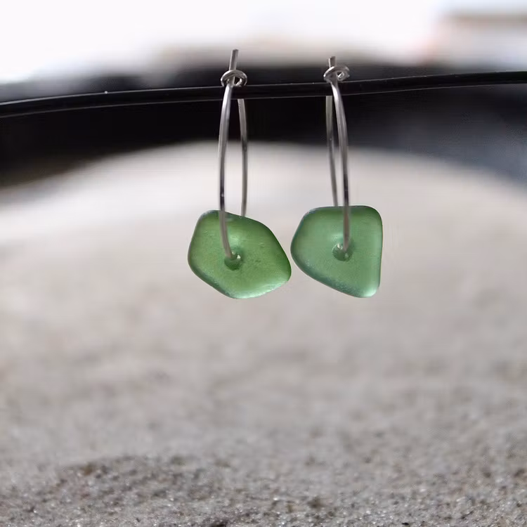 Observera att de två havsglasbitarna i paret inte är identiska, utan varierar en aning i form, tjocklek och färgnyans.