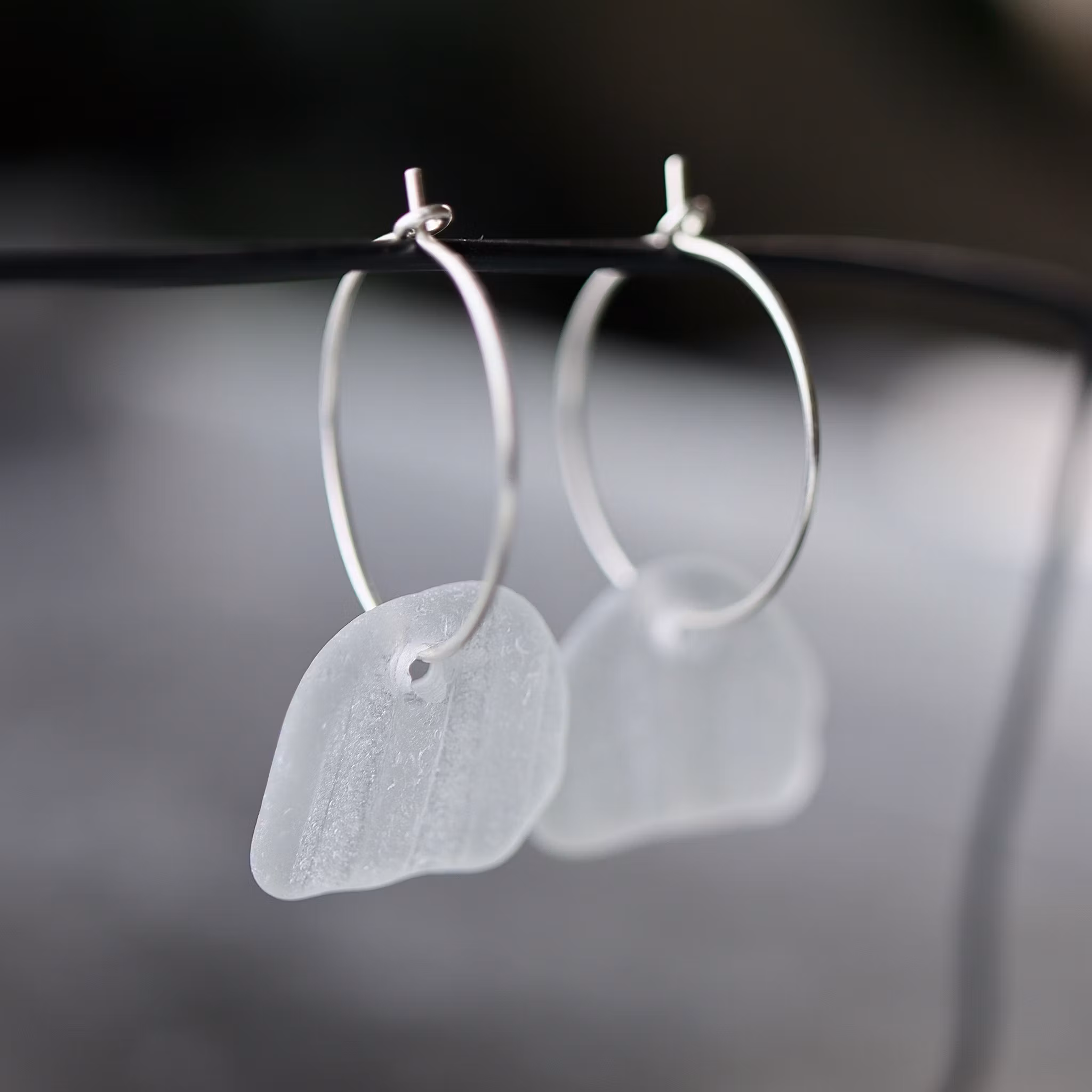 Observera att de två havsglasbitarna i paret inte är identiska, utan varierar en aning i form, tjocklek och färgnyans.