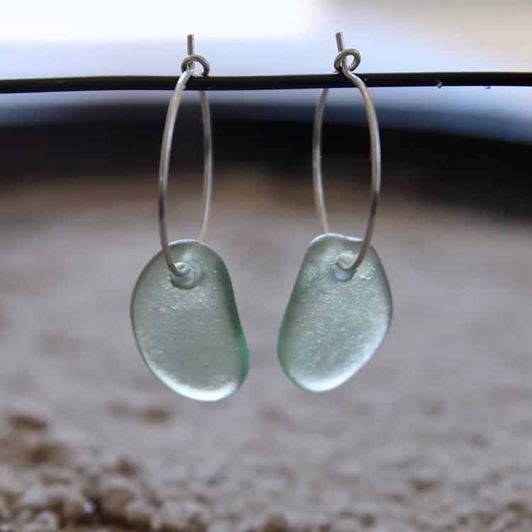 Observera att de två havsglasbitarna i paret inte är identiska, utan varierar en aning i form, tjocklek och färgnyans.