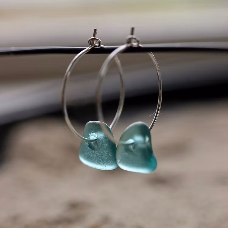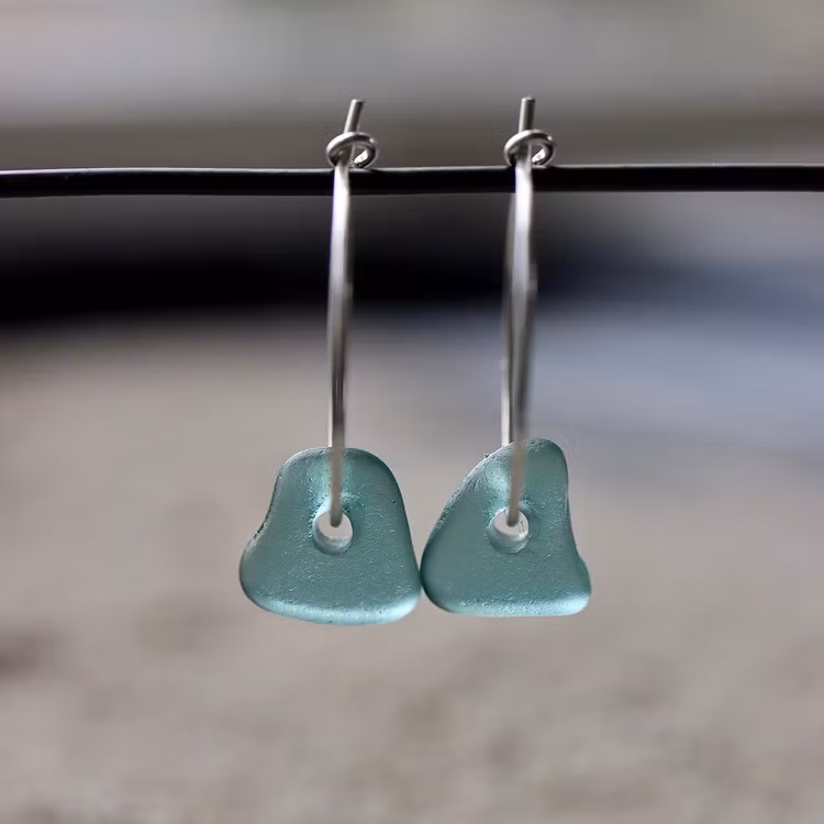 Observera att de två havsglasbitarna i paret inte är identiska, utan varierar en aning i form, tjocklek och färgnyans.
