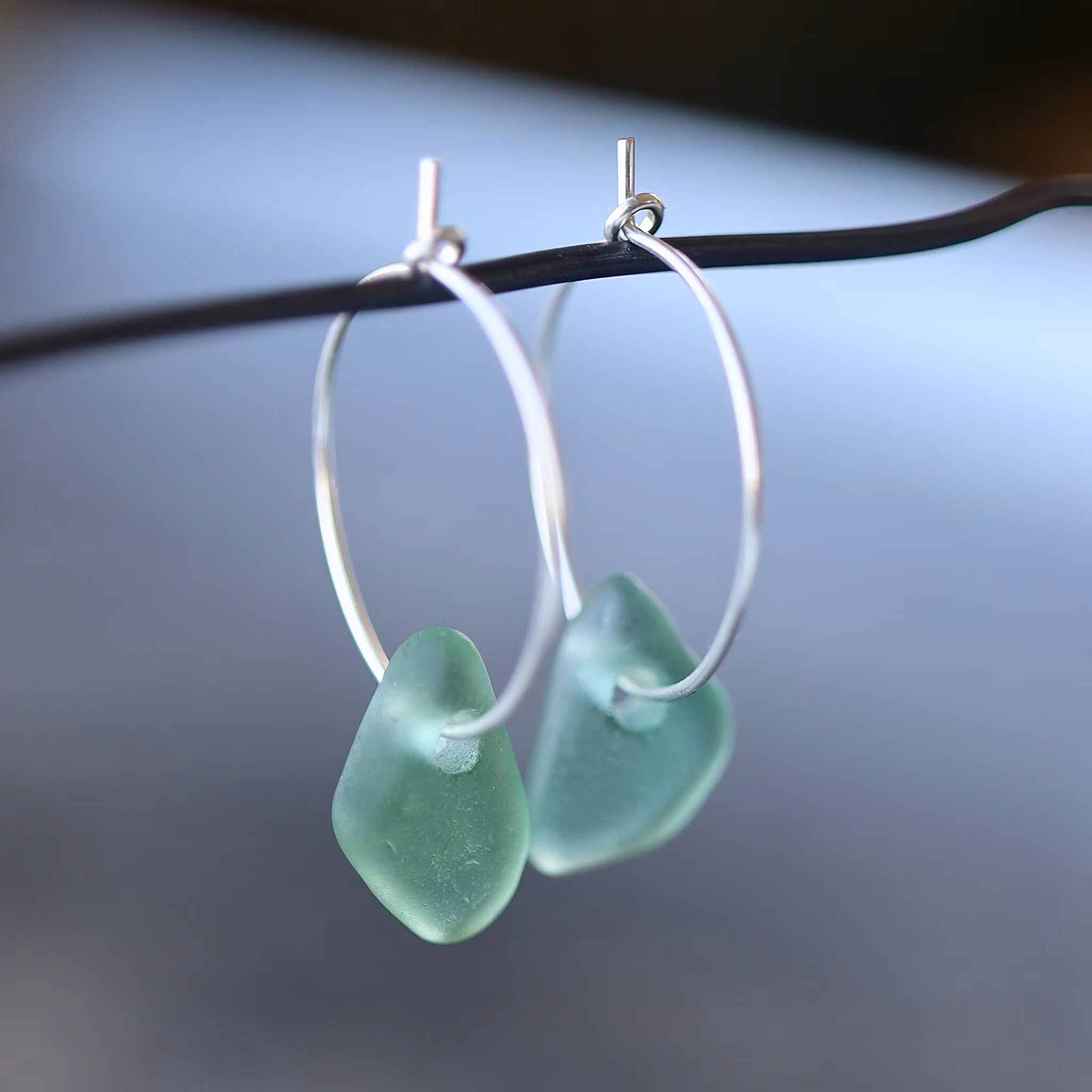 Observera att de två havsglasbitarna i paret inte är identiska, utan varierar en aning i form, tjocklek och färgnyans.