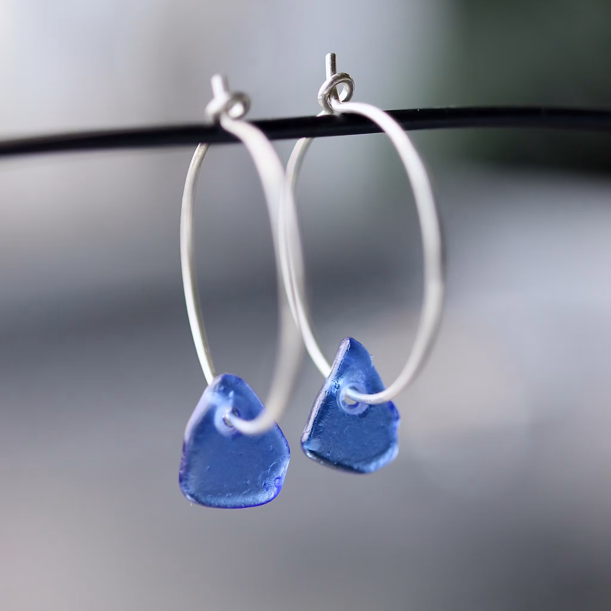 Observera att de två havsglasbitarna i paret inte är identiska, utan varierar en aning i form, tjocklek och färgnyans.