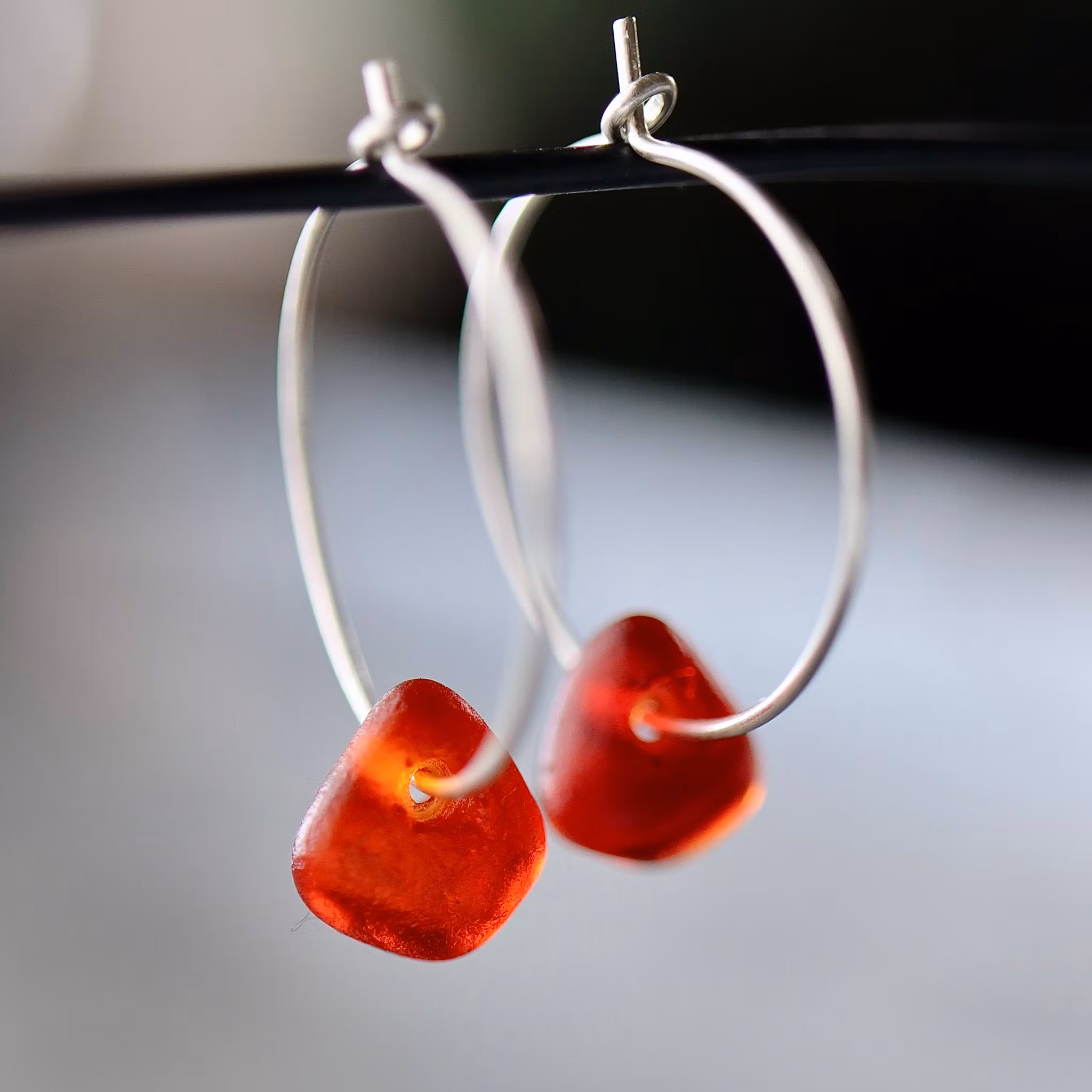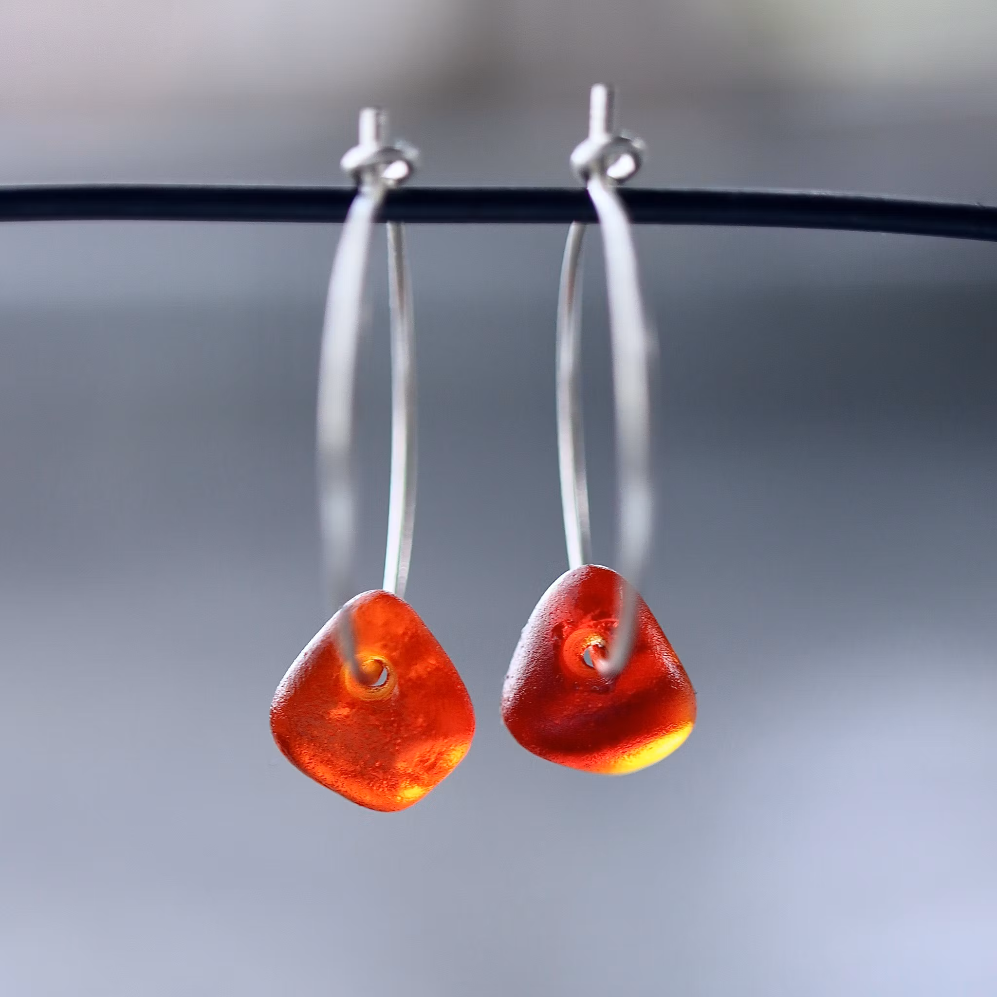 Observera att de två havsglasbitarna i paret inte är identiska, utan varierar en aning i form, tjocklek och färgnyans.