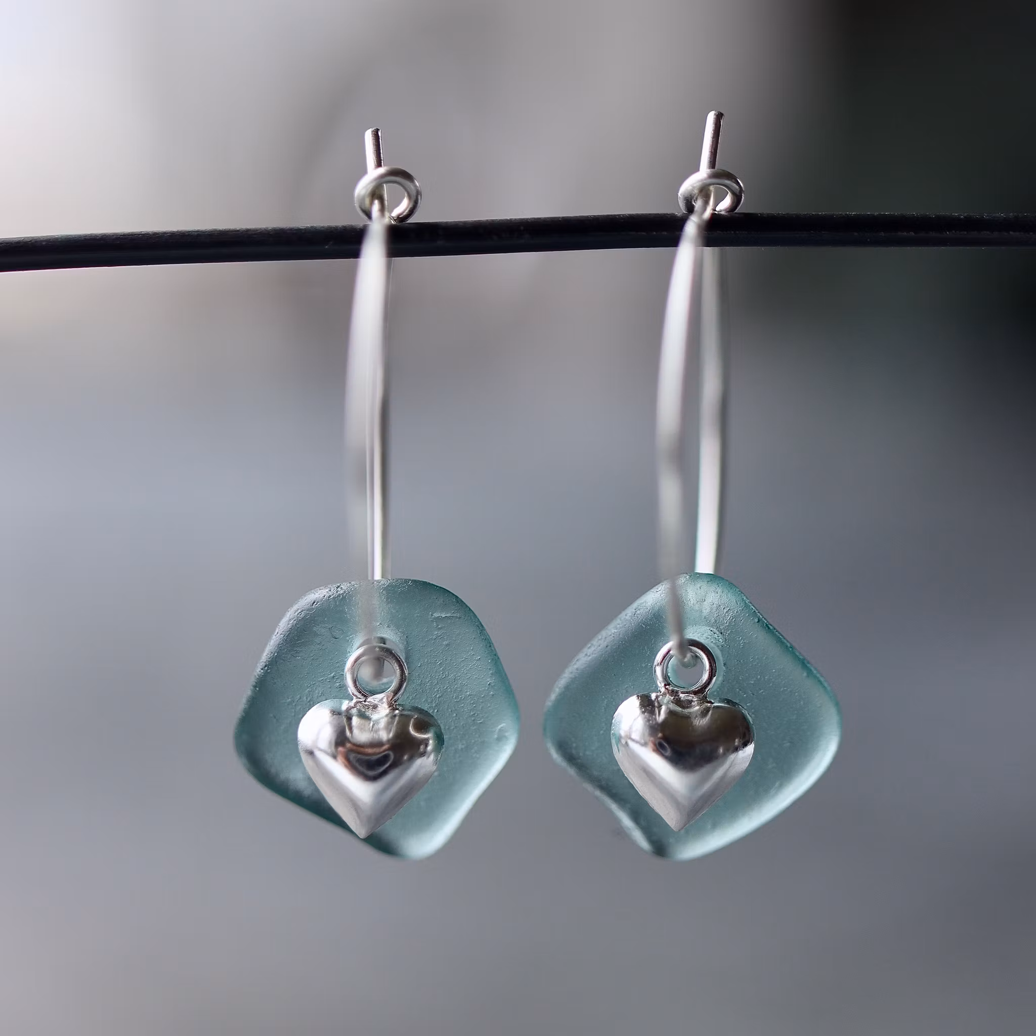 Observera att de två havsglasbitarna i paret inte är identiska, utan varierar en aning i form, tjocklek och färgnyans.