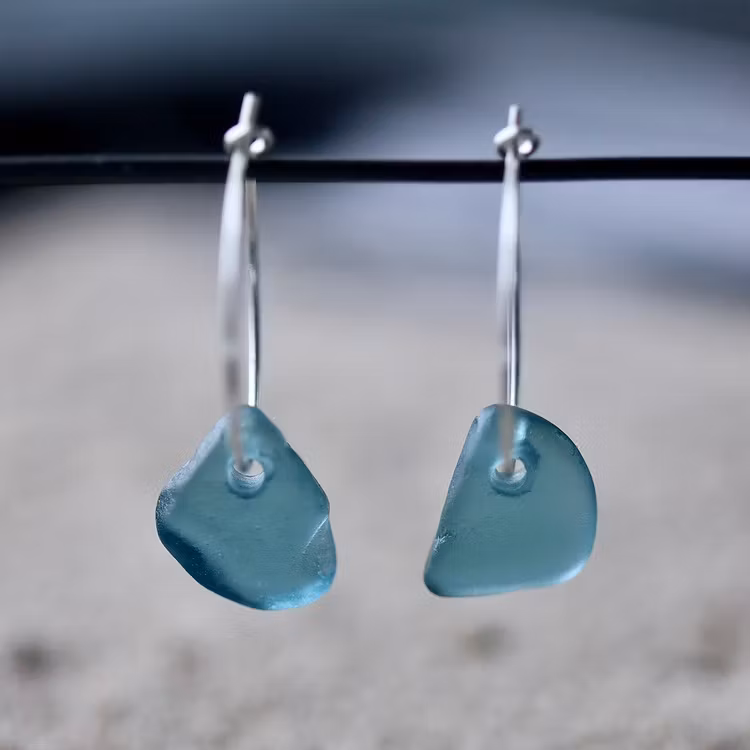 Observera att de två havsglasbitarna i paret inte är identiska, utan varierar en aning i form, tjocklek och färgnyans.