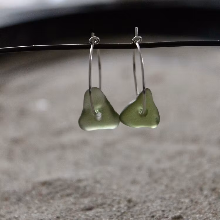 Observera att de två havsglasbitarna i paret inte är identiska, utan varierar en aning i form, tjocklek och färgnyans.
