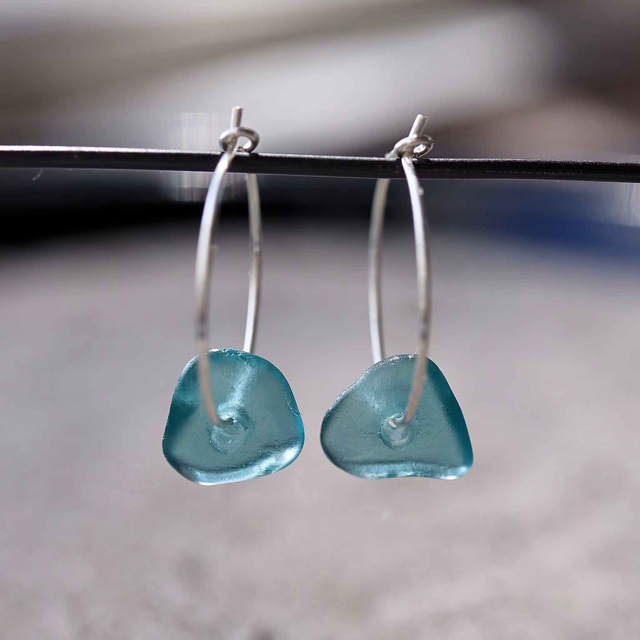 Observera att de två havsglasbitarna i paret inte är identiska, utan varierar en aning i form, tjocklek och färgnyans.