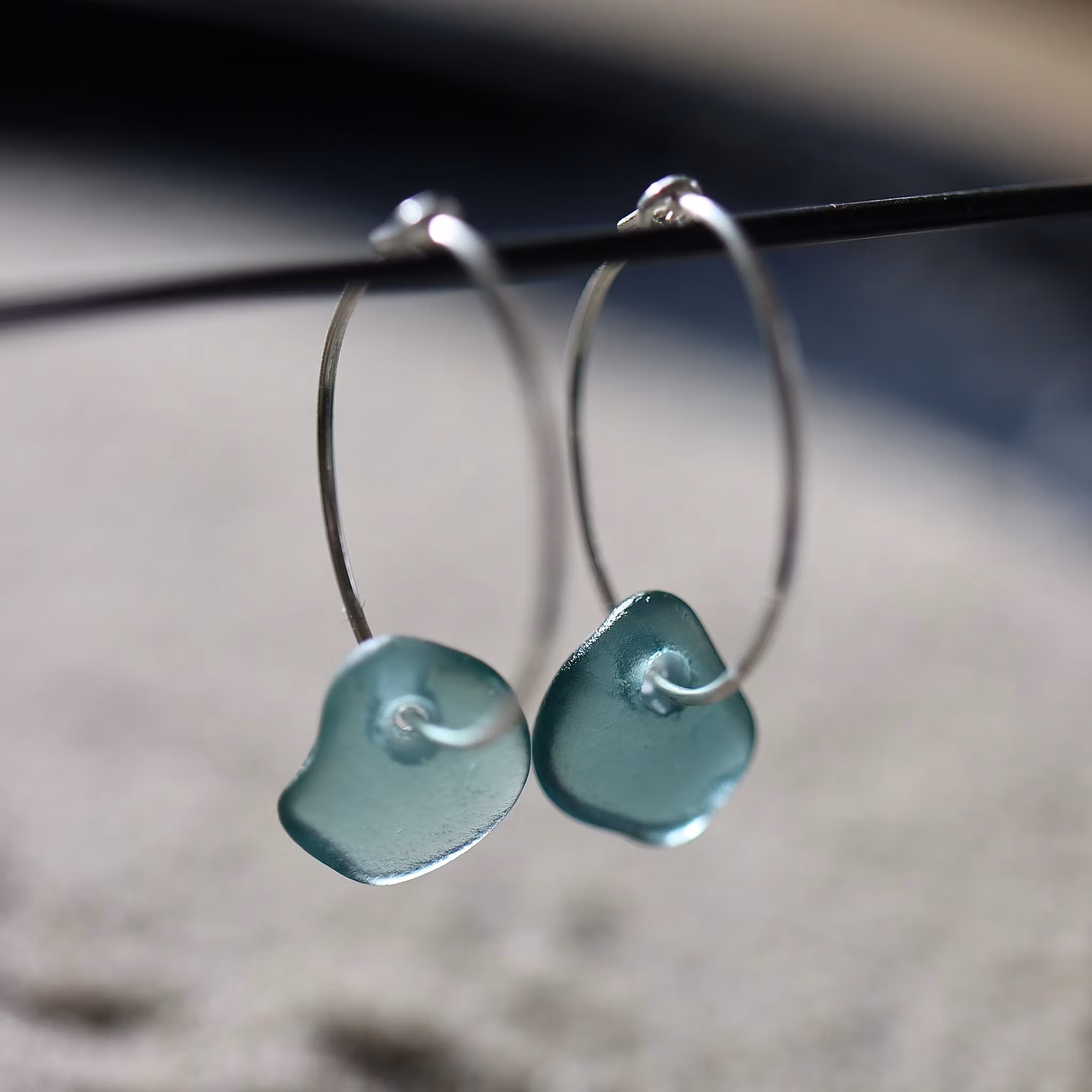 Observera att de två havsglasbitarna i paret inte är identiska, utan varierar en aning i form, tjocklek och färgnyans.