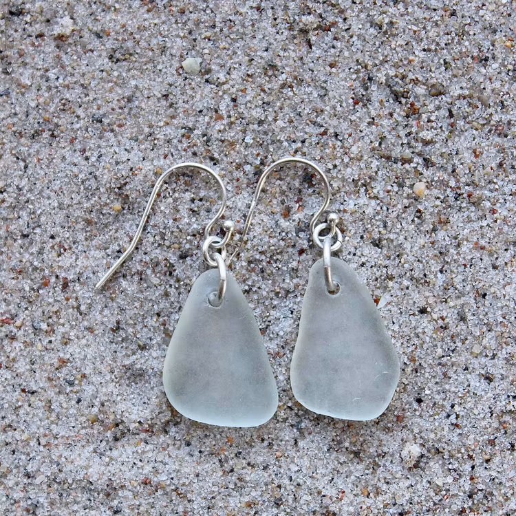 Observera att de två havsglasbitarna i paret inte är identiska, utan varierar en aning i form, tjocklek och färgnyans.