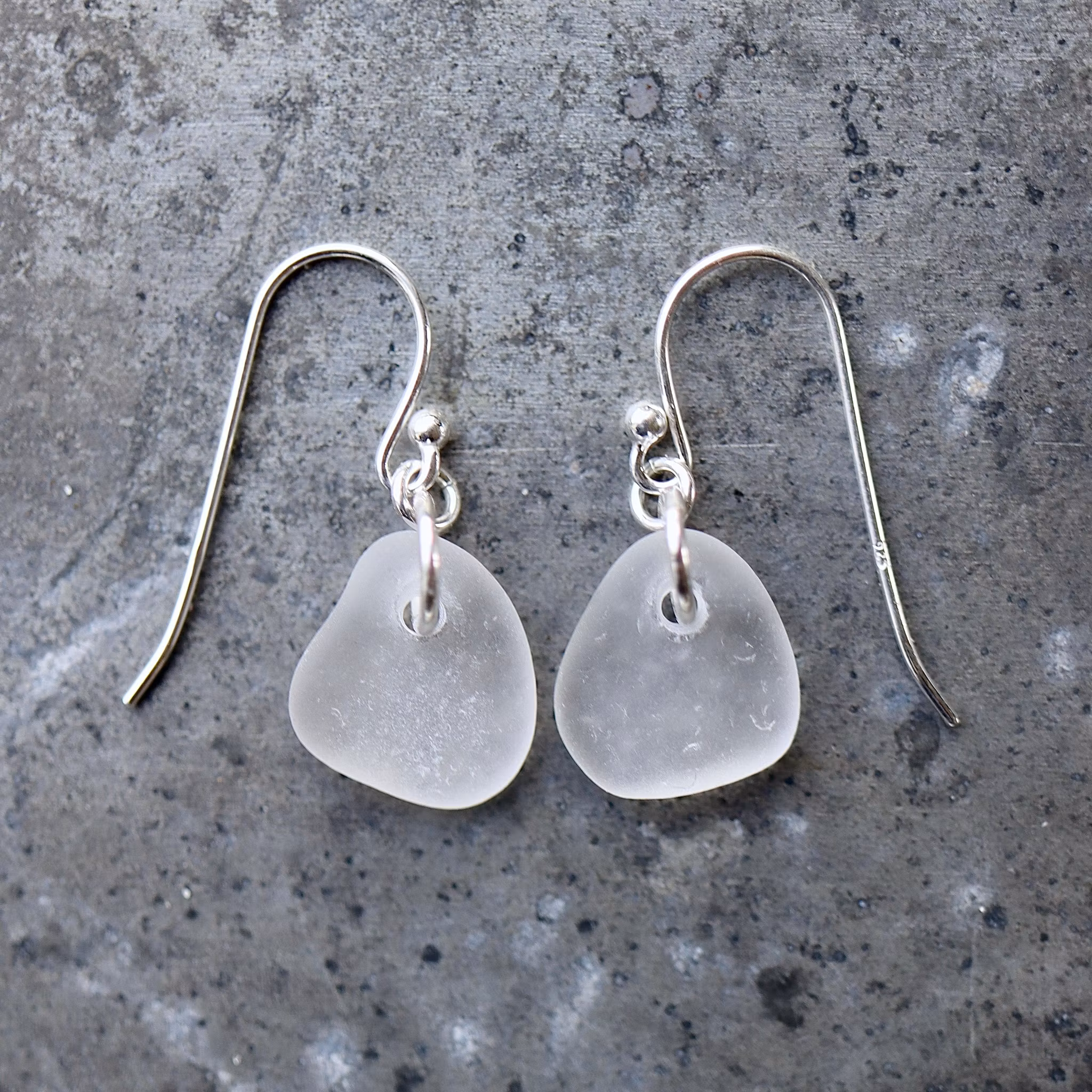 Observera att de två havsglasbitarna i paret inte är identiska, utan varierar en aning i form, tjocklek och färgnyans.