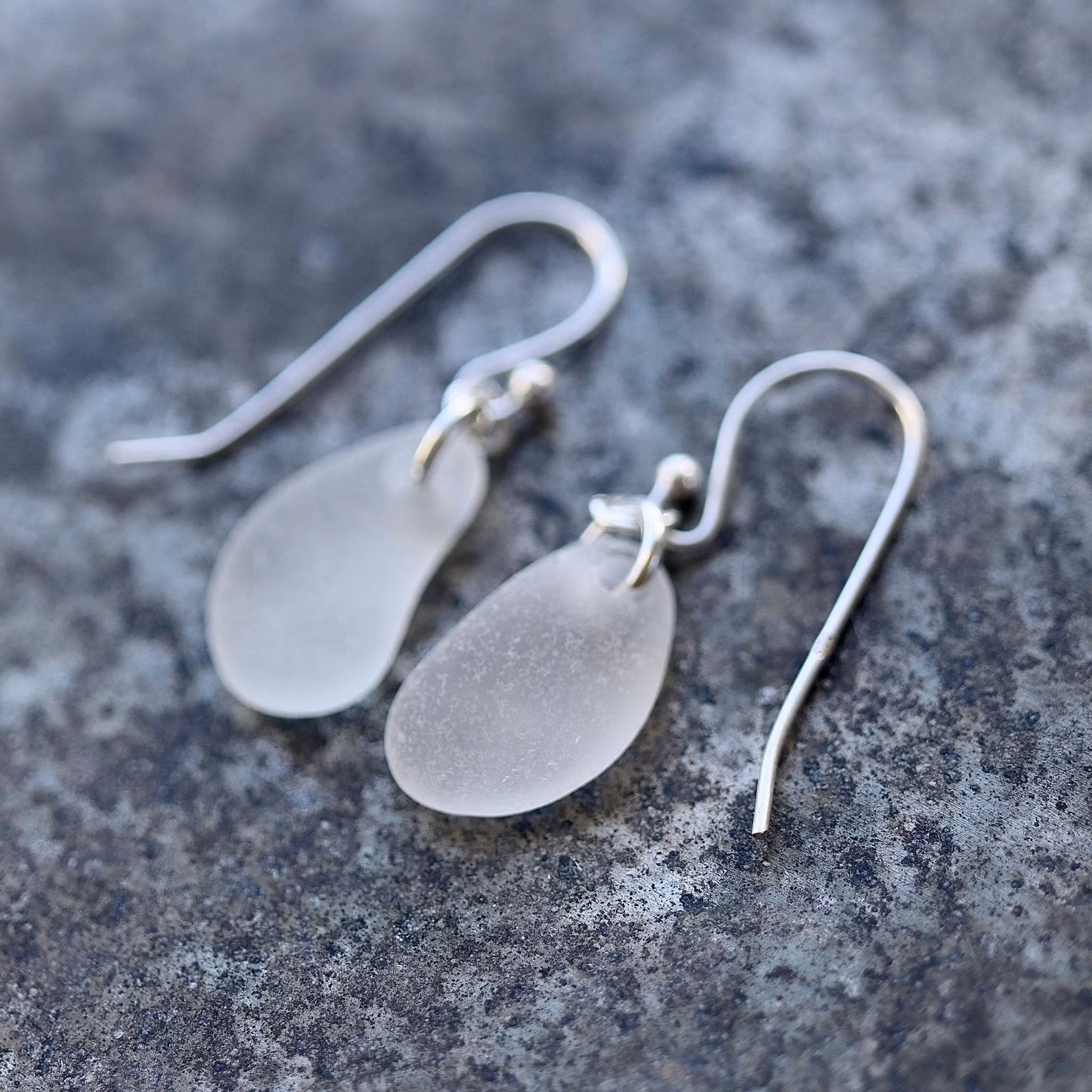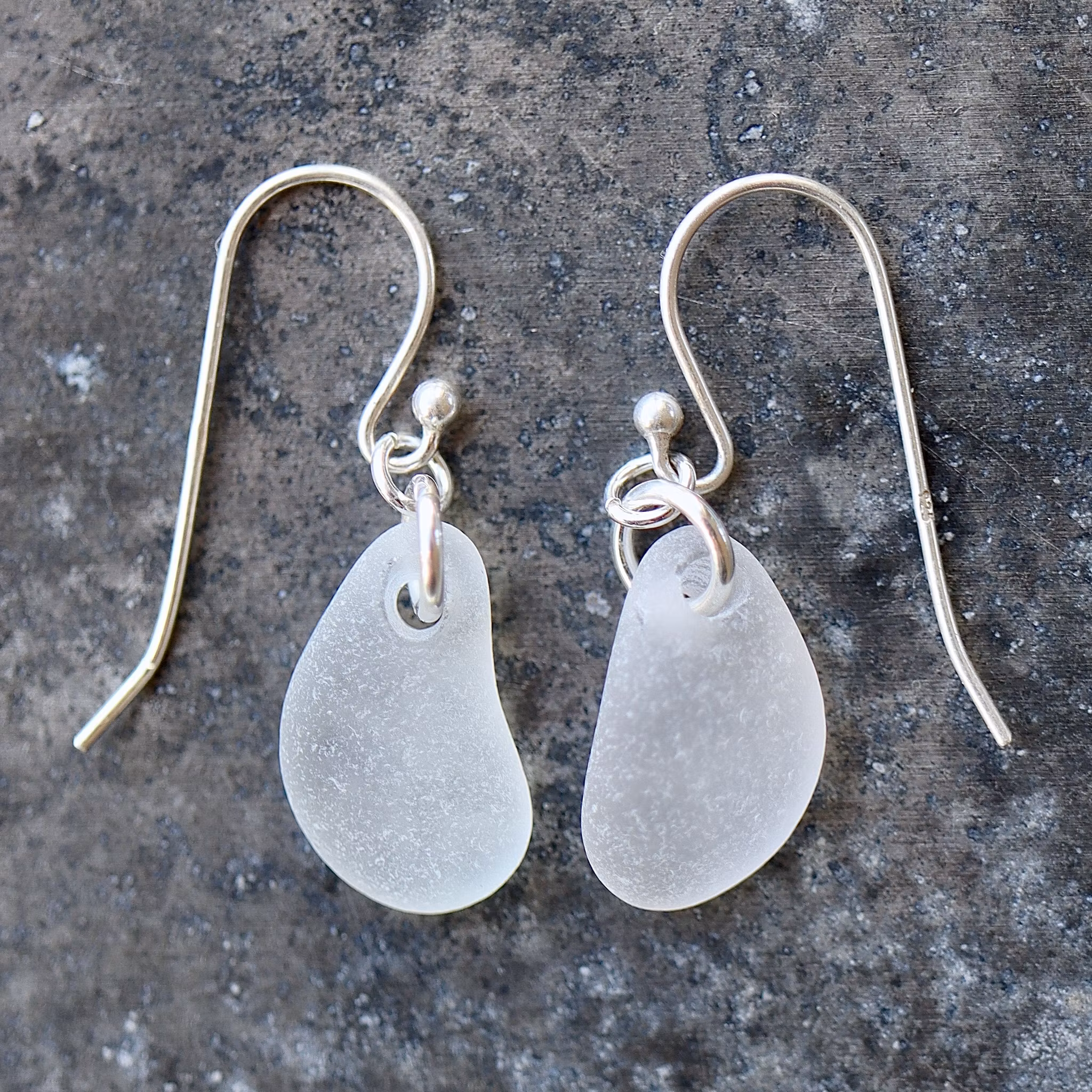 Observera att de två havsglasbitarna i paret inte är identiska, utan varierar en aning i form, tjocklek och färgnyans.