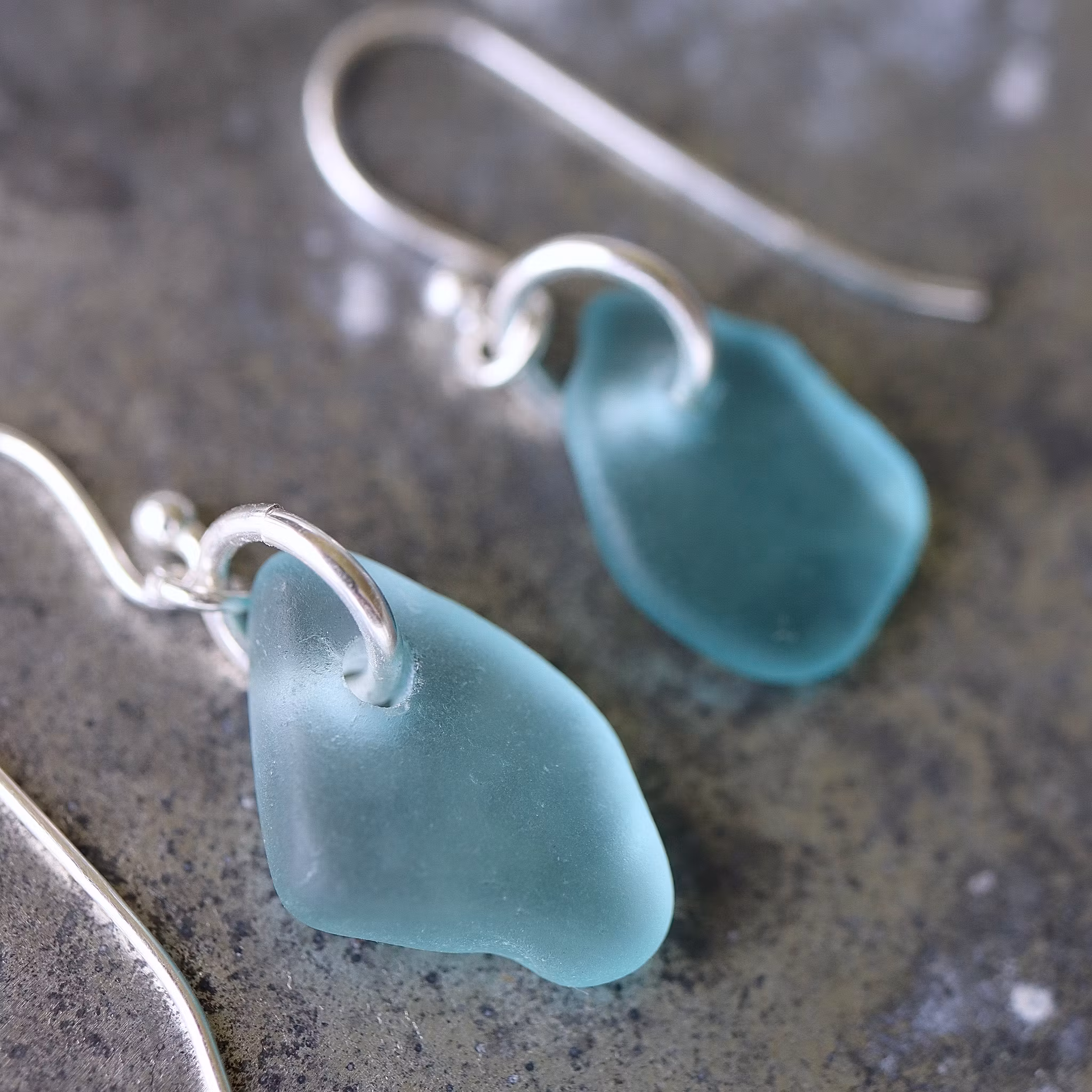 Observera att de två havsglasbitarna i paret inte är identiska, utan varierar en aning i form, tjocklek och färgnyans.