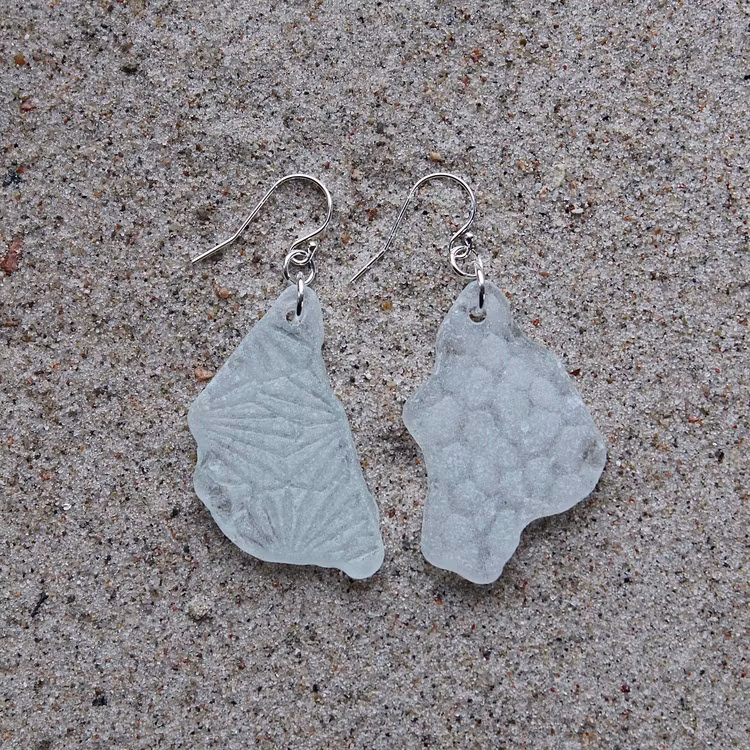 Observera att de två havsglasbitarna i paret inte är identiska, utan varierar en aning i form, tjocklek och färgnyans.